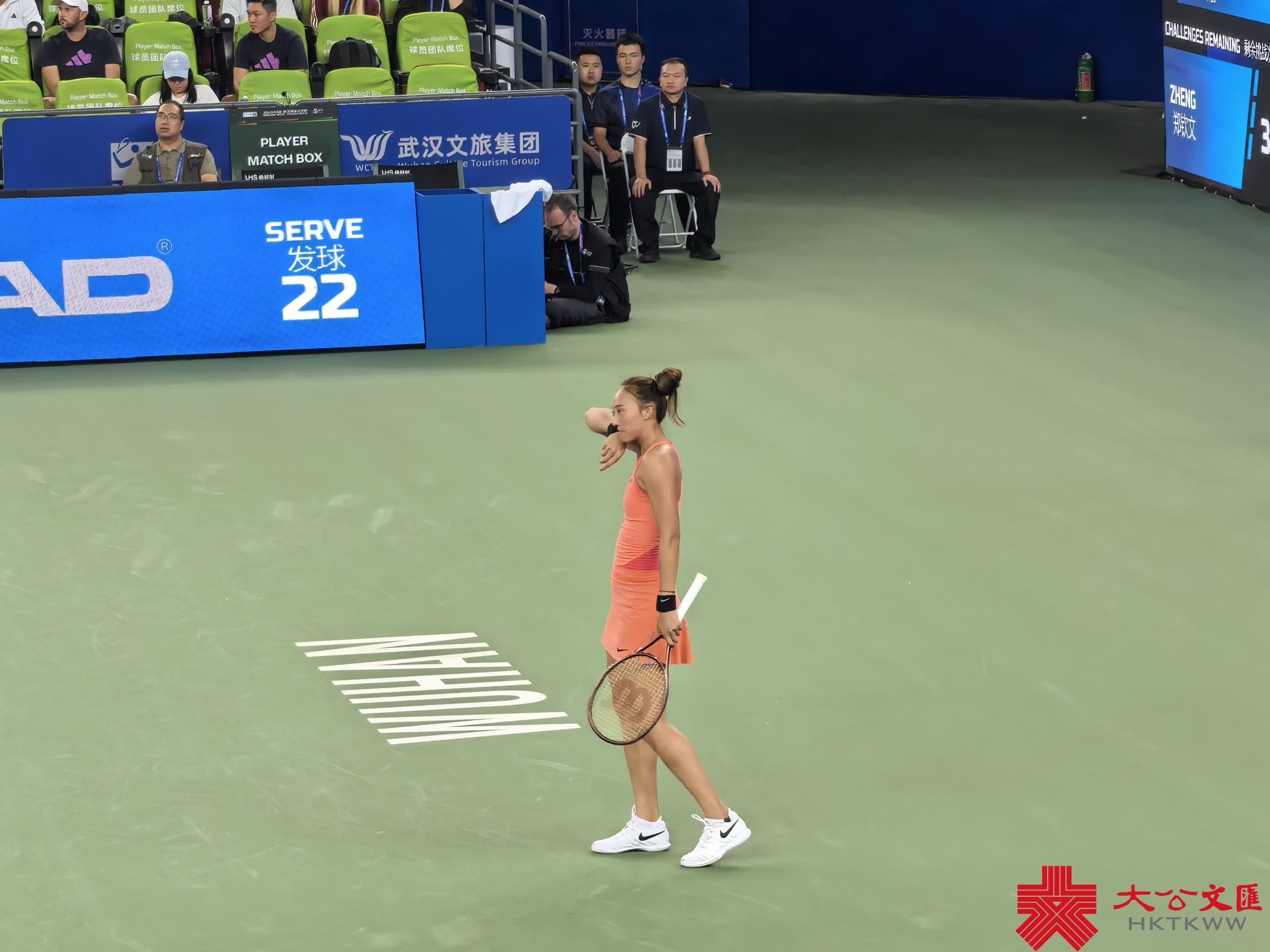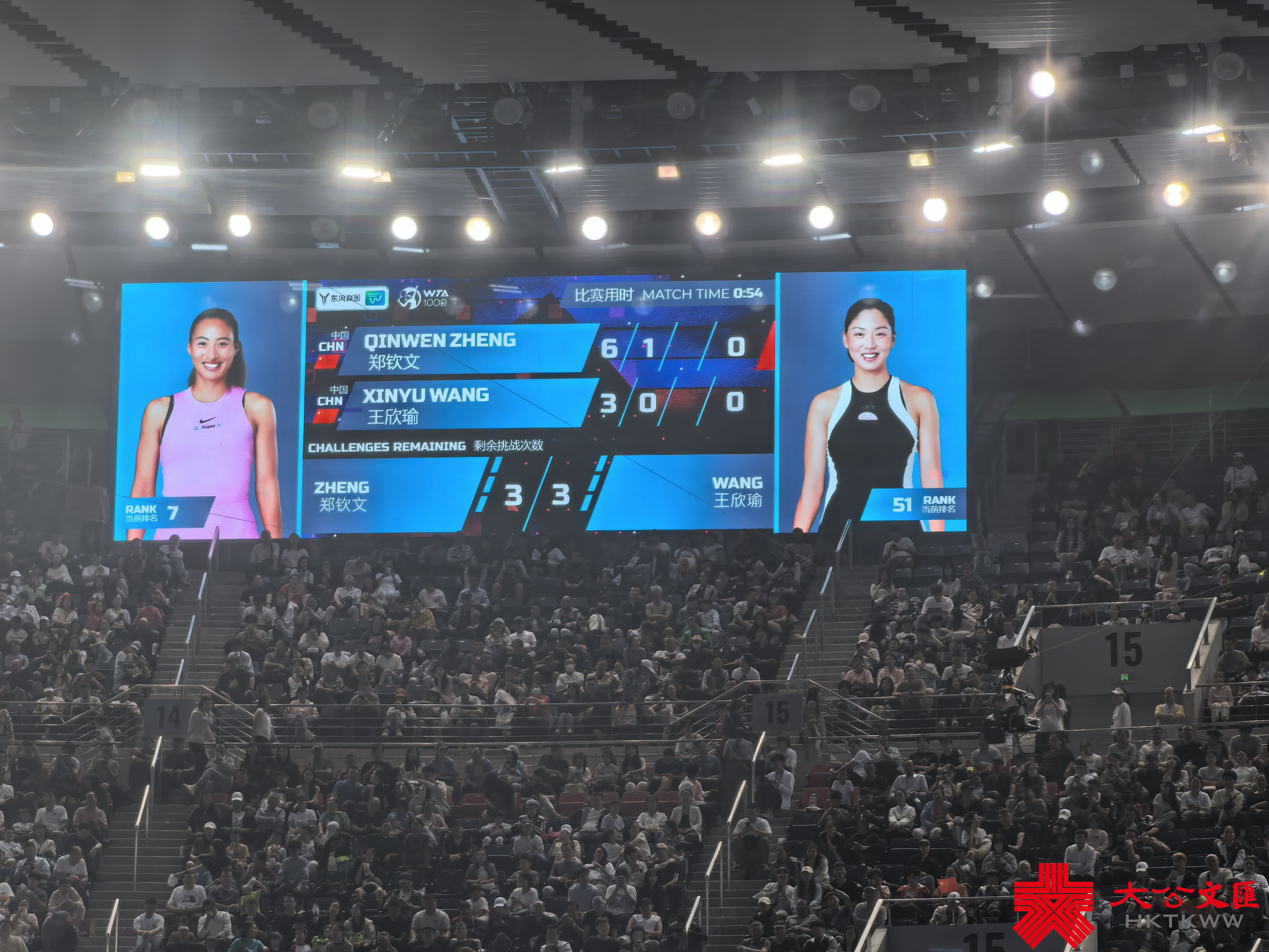 (大公文匯網記者 張帥、歐陽思柔 武漢報道)10月12日晚間,2024年WTA武漢網球公開賽半決賽迎來「中國德比」。在首盤比賽中,鄭欽文6-3取勝,大比分1比0暫時領先。