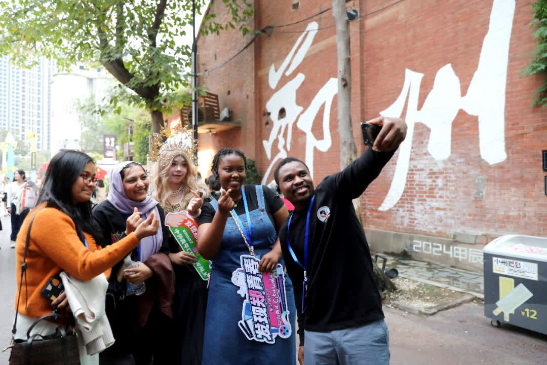 最後,學生們來到了鄭州油化廠創意園,一個展現了城市舊貌新顏蝶變歷程的地方。大家在感興趣的文創店、遊玩項目中自由探索,在經典的打卡點合影留念。緬甸留學生AYE AYE HTUN還體驗了XR沉浸劇,她表示通過VR技術真實地感受了中國的歷史和中國的神話,讓她非常滿足非常開心,這個VR體驗非常的刺激。