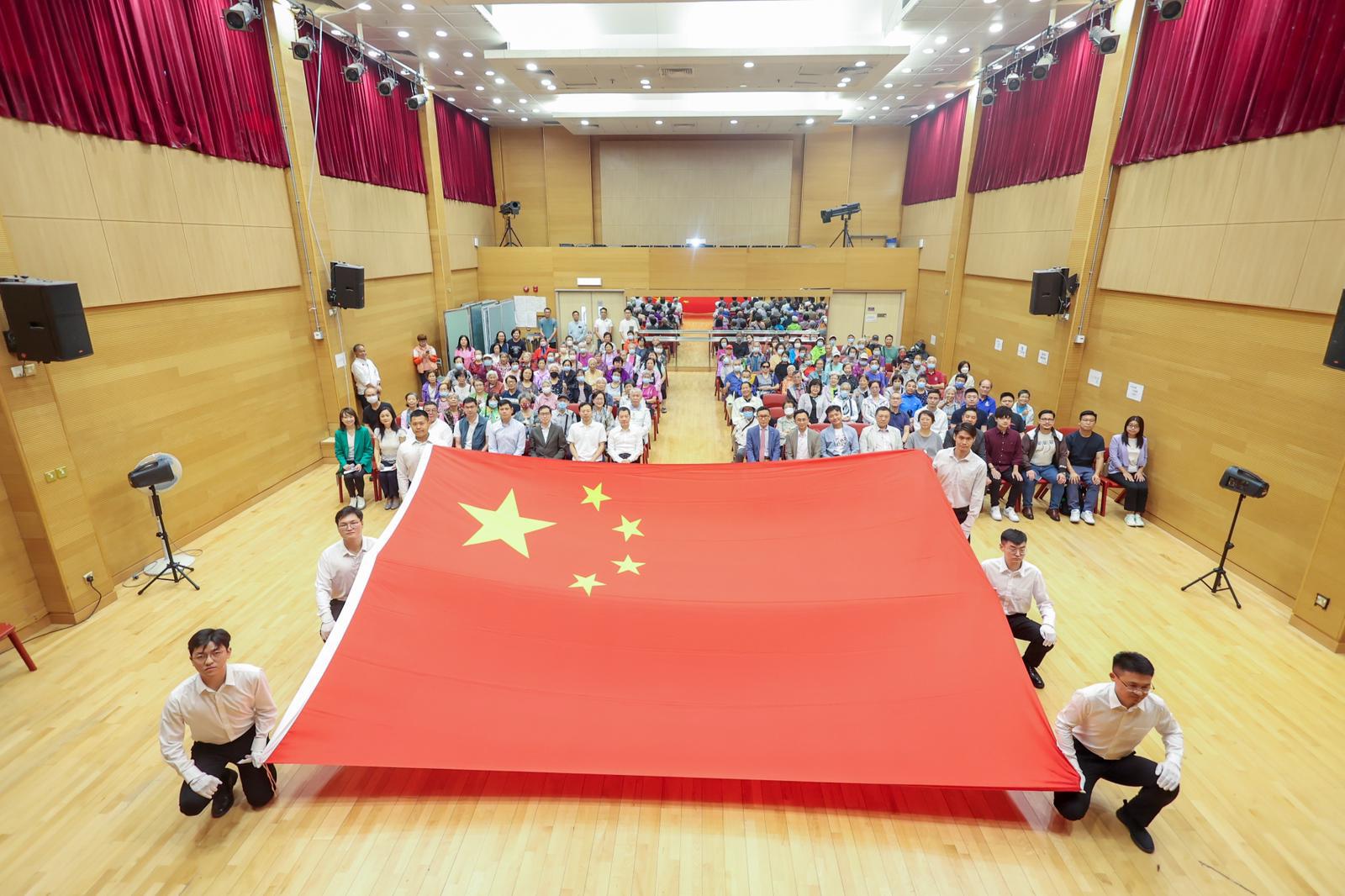 大公文匯全媒體報道,中國海外集團成立45周年之際,獲北京市人民政府天安門地區管委會贈送今年6月在天安門廣場升掛的國旗。現時正值國慶期間,中國海外集團於昨日(12日)借出國旗,在深水埗麗閣社區會堂進行國旗展示活動。當日中海集團董事、副總經理馬福軍、深水埗民政事務專員黃昕然、中央政府駐港聯絡辦九龍工作部副部長李文彬、立法會議員陳凱欣及鄭泳舜、深水埗居民聯會理事長陳偉明、多位深水埗區議員及過百位市民出席參與,活動別具意義,有助大力弘揚愛國精神、厚植愛國情懷,發揮好國旗在愛國主義教育中的重要作用。