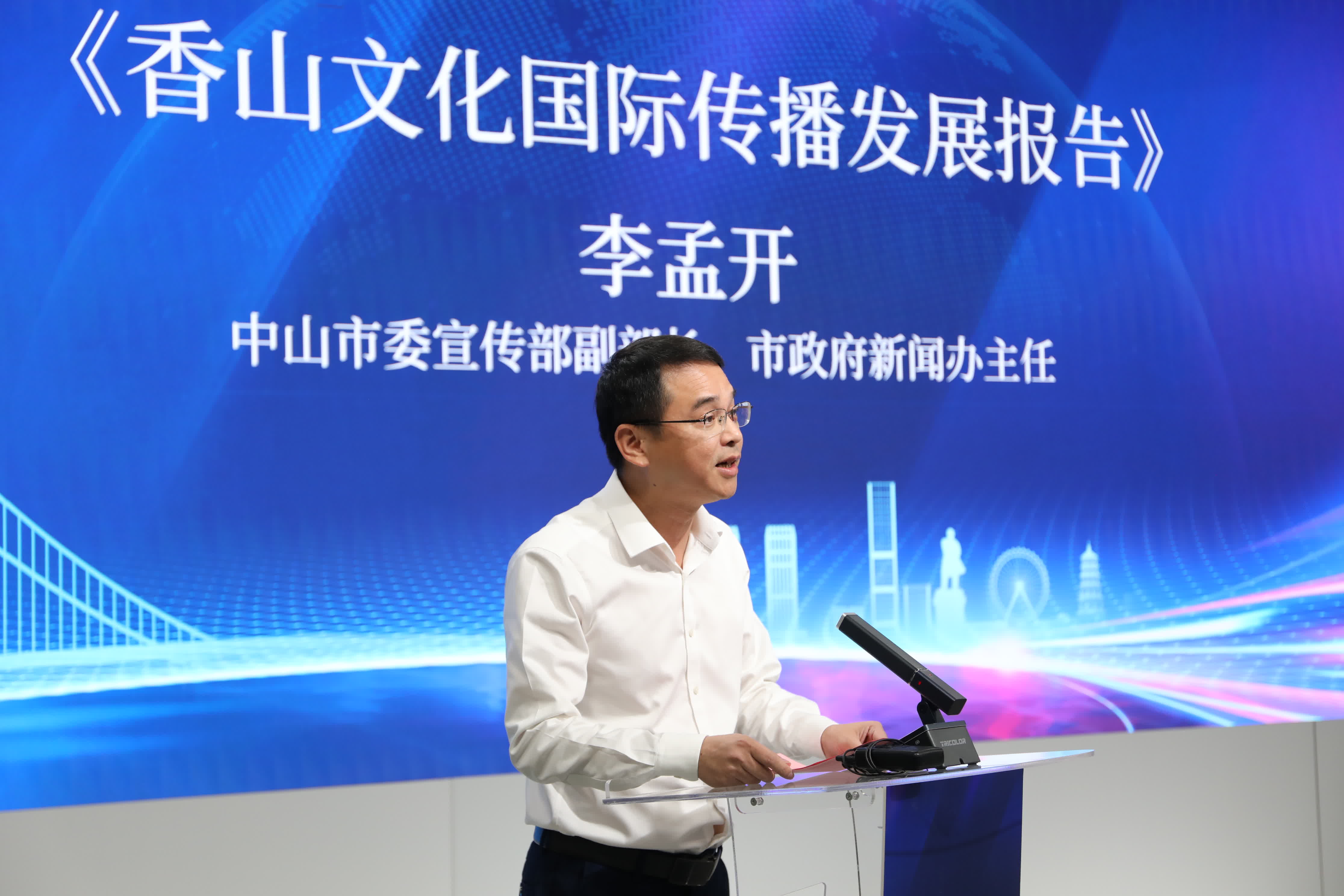 10月11日,「世界走進中山」新時代國際傳播主題參訪活動——《香山文化國際傳播發展報告》發布儀式在中山市海外傳播中心暨網上新聞發布廳舉行。發布儀式上,由中山市人民政府新聞辦、中山市互聯網辦公室牽頭編制的《香山文化國際傳播發展報告》(以下簡稱《報告》)正式發布。中山市委宣傳部副部長、市政府新聞辦主任李孟開就《報告》進行了解讀。