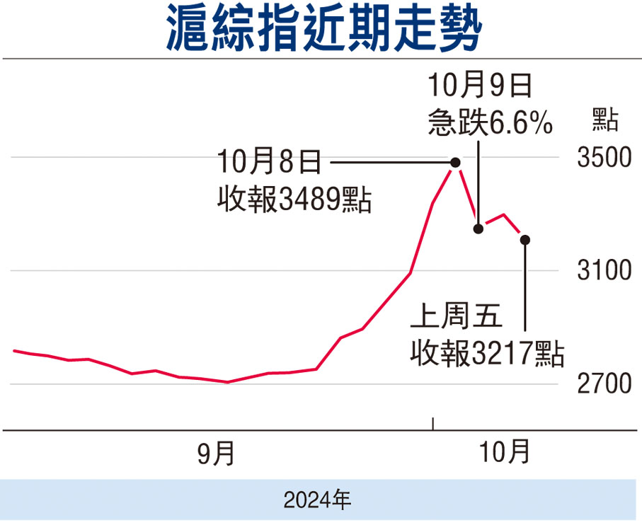 節後A股市場對後續政策的預期持續發酵,但短期指數層面較大的漲幅累計了不少獲利盤,令大盤波動有所加劇,三大指數呈現寬幅震盪,市場單日成交量亦從高峰期的3.45萬億元(人民幣,下同)縮減至1.5萬億元左右。截至上周五收盤,大盤指數已跌穿五日均線,預示市場正消化短期獲利籌碼。盤面上看,A股投資風格隨着市場調整有所變化,中小盤風格跌幅加劇,科技、金融等板塊走勢彈性變大,資金開始向有基本面和政策支撐的方向聚攏。