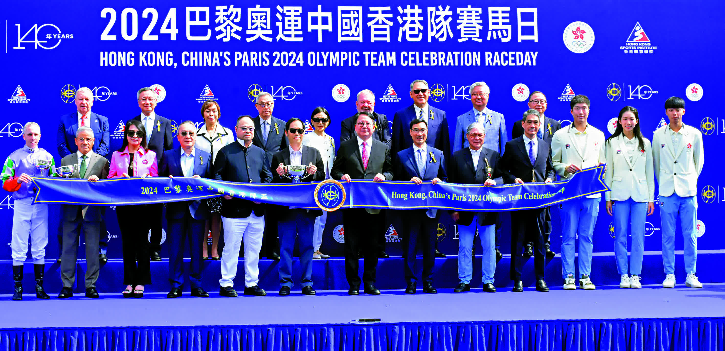 昨天的賽馬日在上午11時30分舉行開幕式,由巴黎奧運開幕式港團持旗手張家朗手持特區區旗進場,其餘出席的代表團運動員包括江旻憓、何詩蓓、盧蔚豐、何瑋桁、王嘉莉、石偉雄、盧善恩、楊霈霖、譚凱琳、馬君正、鄭清然、祥傑及刁俊稀。出席嘉賓還包括馬會主席利子厚、港協暨奧委會會長霍震霆、香港體院主席鄧竟成等。