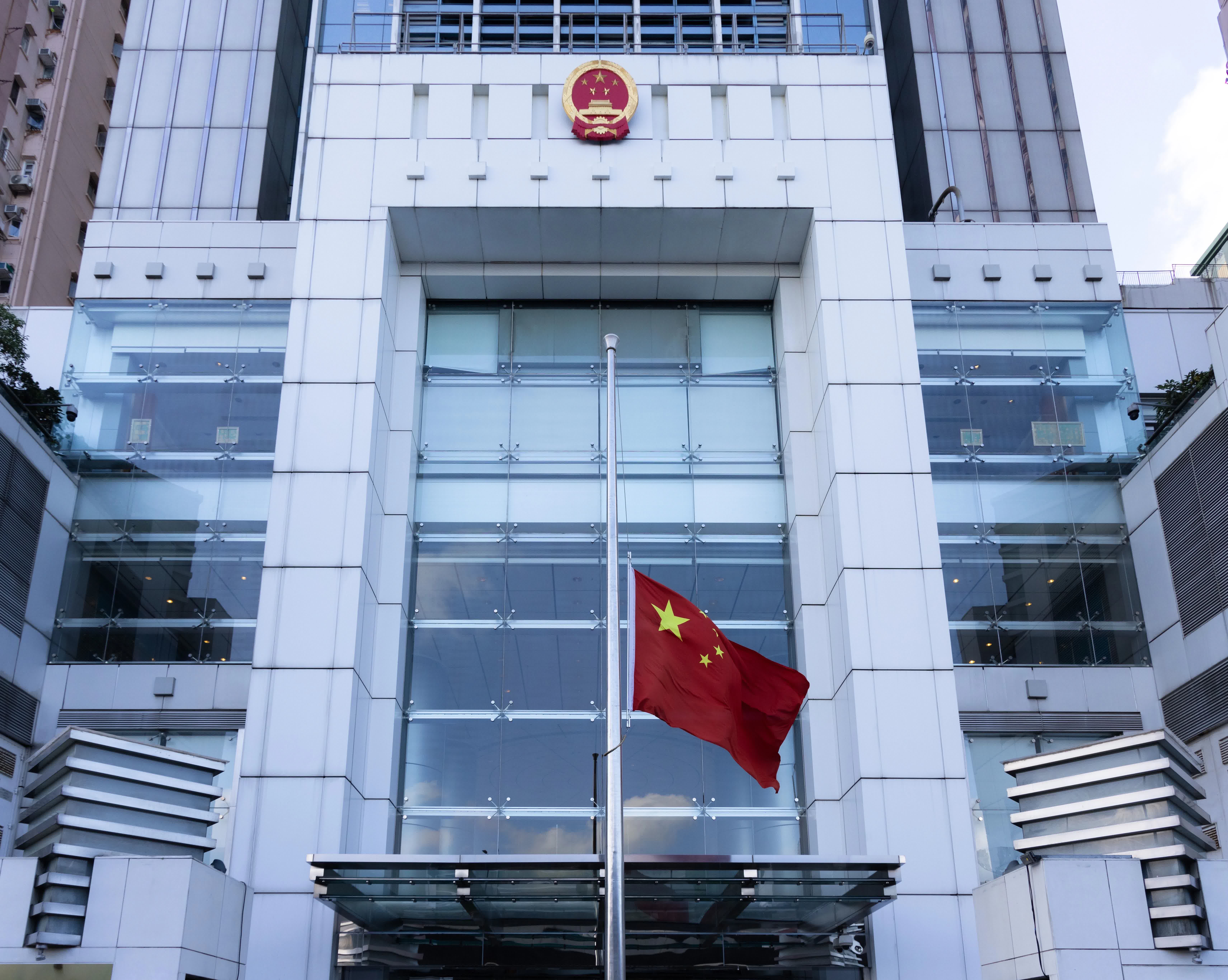 10月14日,為悼念吳邦國同志,中央人民政府駐香港特別行政區聯絡辦公室下半旗誌哀。(中央政府駐港聯絡辦圖片)