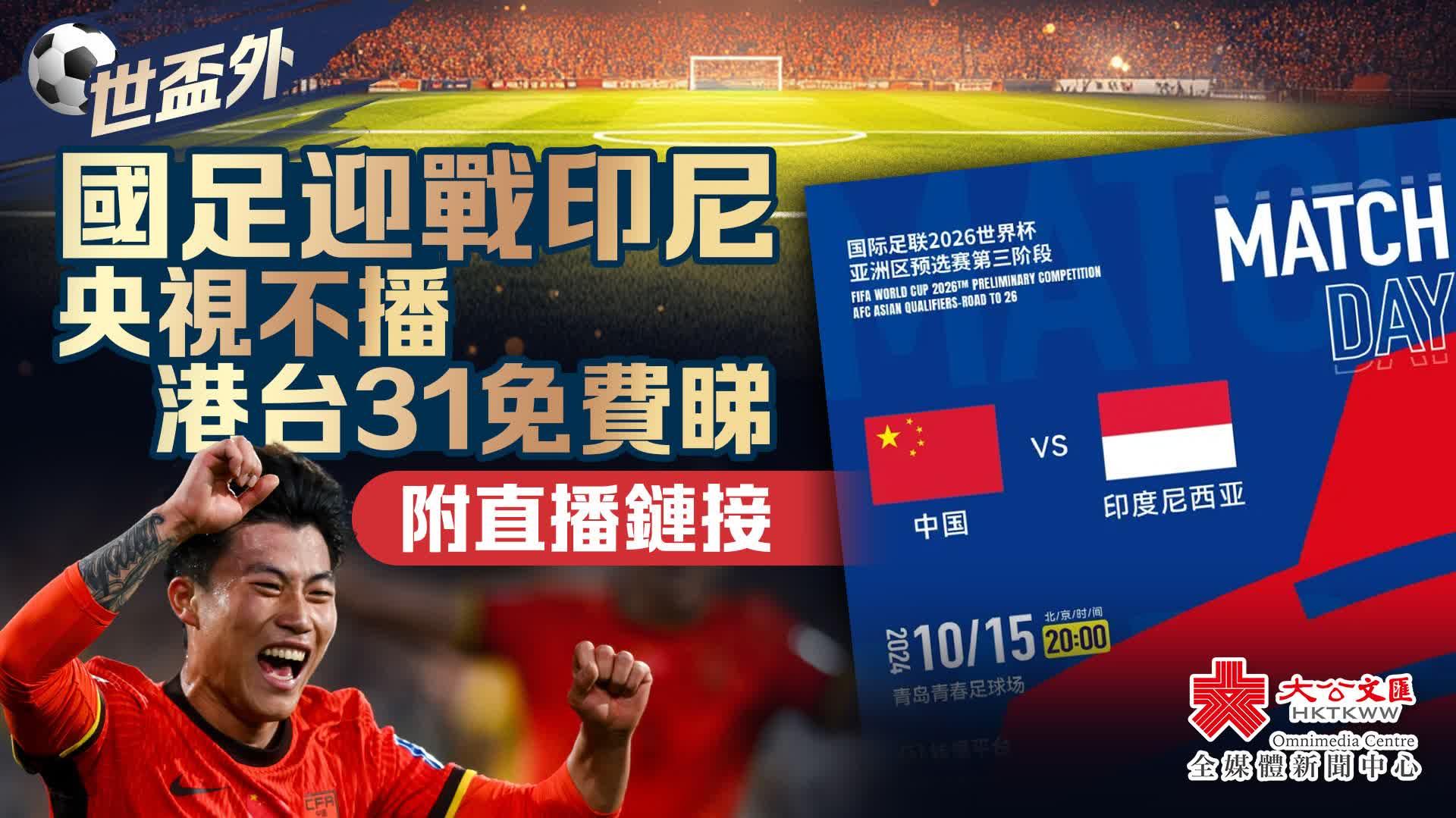 大公文匯全媒體報道,世界盃亞洲區外圍賽18強賽,第四輪分組賽中國男足今日(15日)晚上8時對陣印度尼西亞,港台電視31台將免費直播比賽。和前三場比賽一樣,央視依然不會轉播本場比賽。