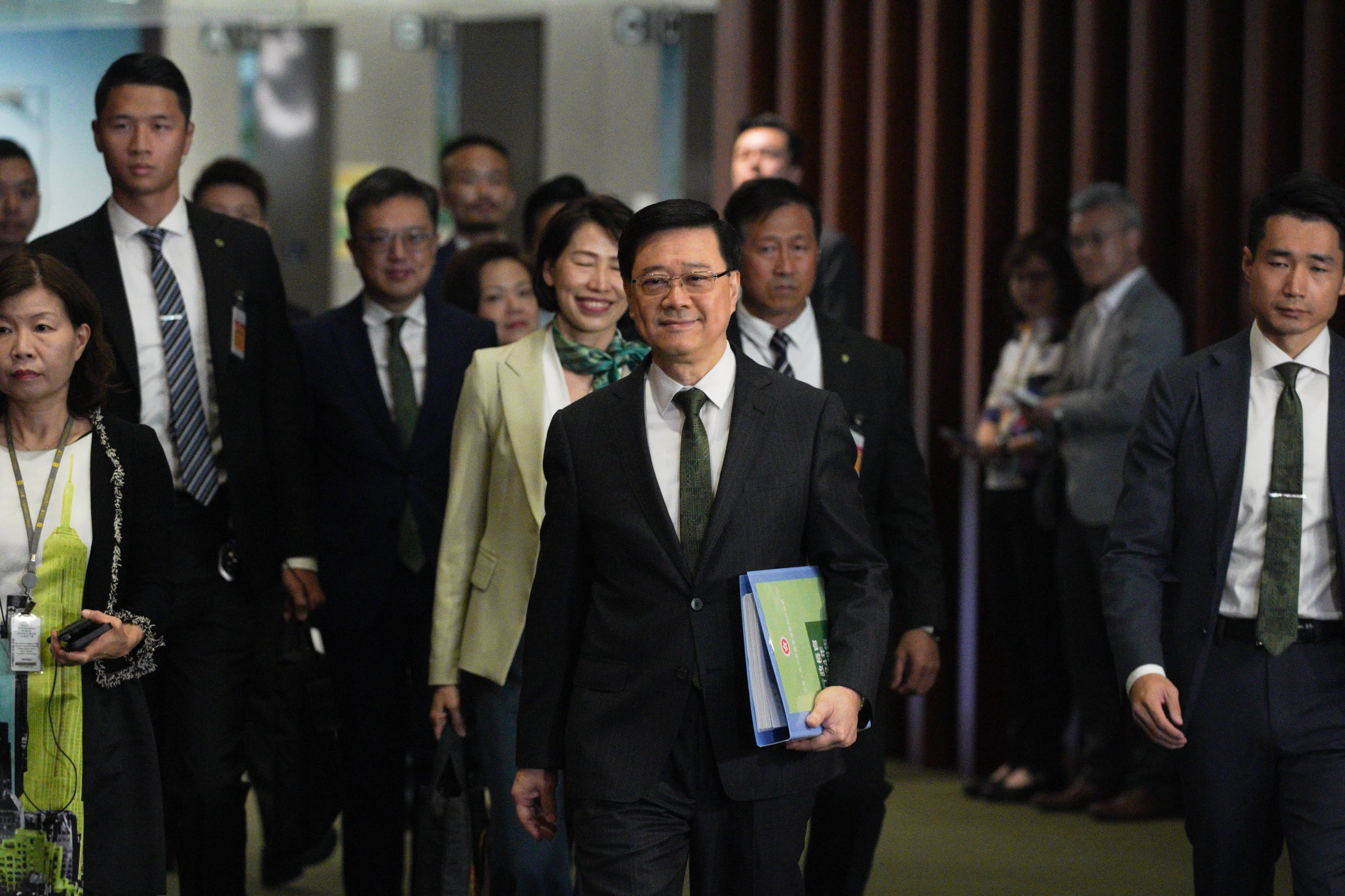 (大公文匯全媒體記者王俊傑報道)新一份《施政報告》今日(16日)公布,行政長官李家超聯同司局長官員穿戴由理大團隊設計的綠色領呔和領巾,配合《施政報告》的綠色,寓意香港未來發展欣欣向榮。