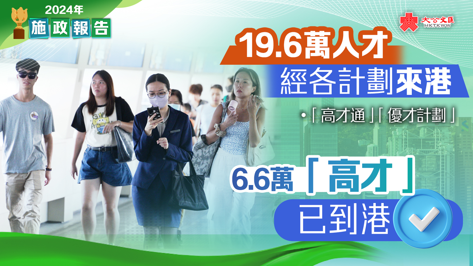 新一份施政報告提到,政府將在「優秀人才入境計劃」下增設機制,主動邀請頂尖人才來港發展,推進國際高端人才集聚香港;及延長本港大學的大灣區校園畢業生納入「留港/回港就業安排」的試行安排,為期2年。數據顯示,有13.2萬人申請「優才計劃」,但最終只有2.1萬宗個案獲批,1.9萬「優才」來港。「非本地畢業生留港/回港就業安排」下,當局接獲近4.7萬宗申請,批出4.4萬宗,最終3.9萬「港漂」學生留港。