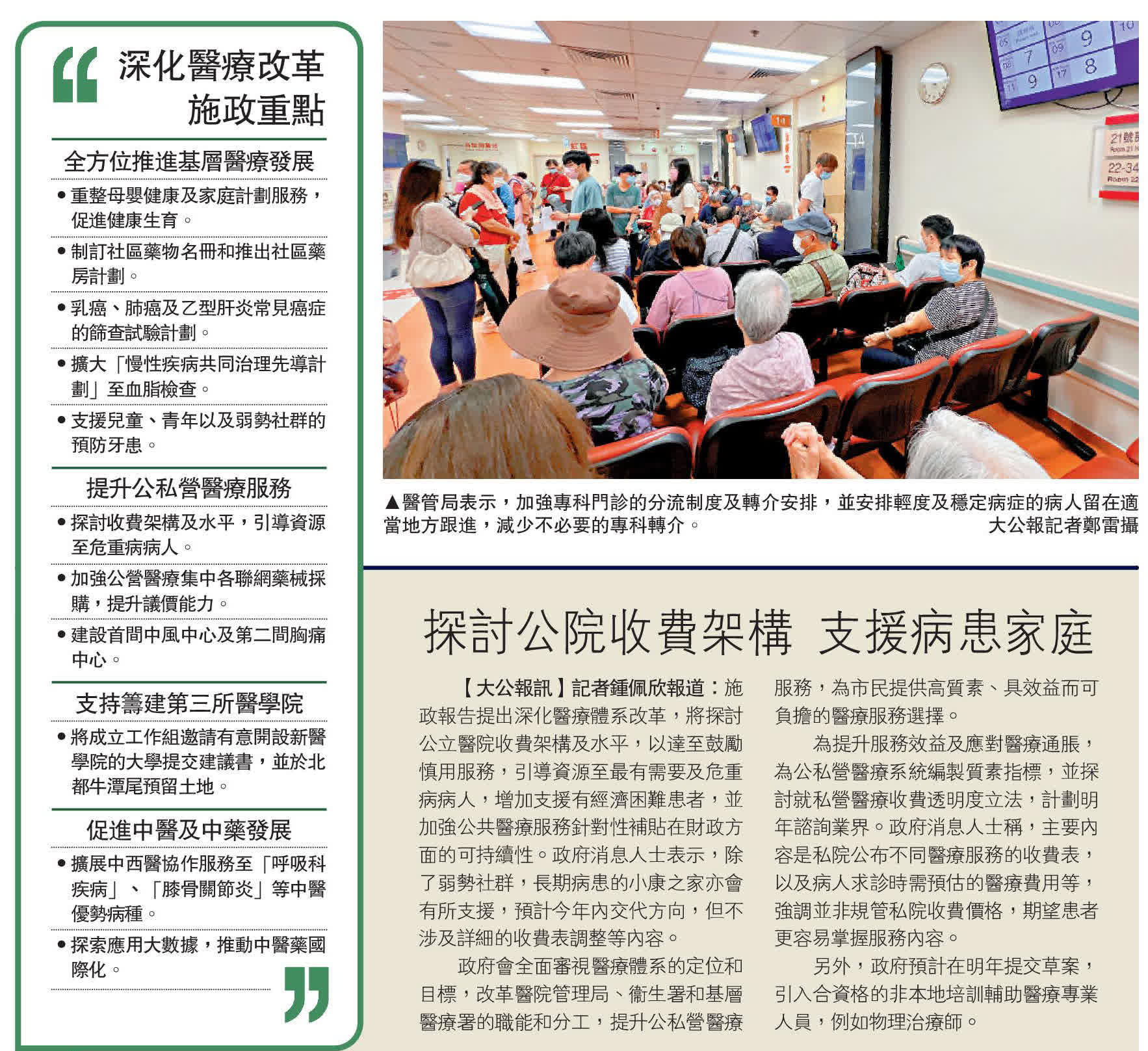 另外,提出發展本港成為國際醫療創新樞紐,政府將會改革藥械審批制度,「1+」審批機制今年底前擴展至所有新藥,包括疫苗及先進療法製品,完善評審制度以加快註冊,體現「好藥港用」。