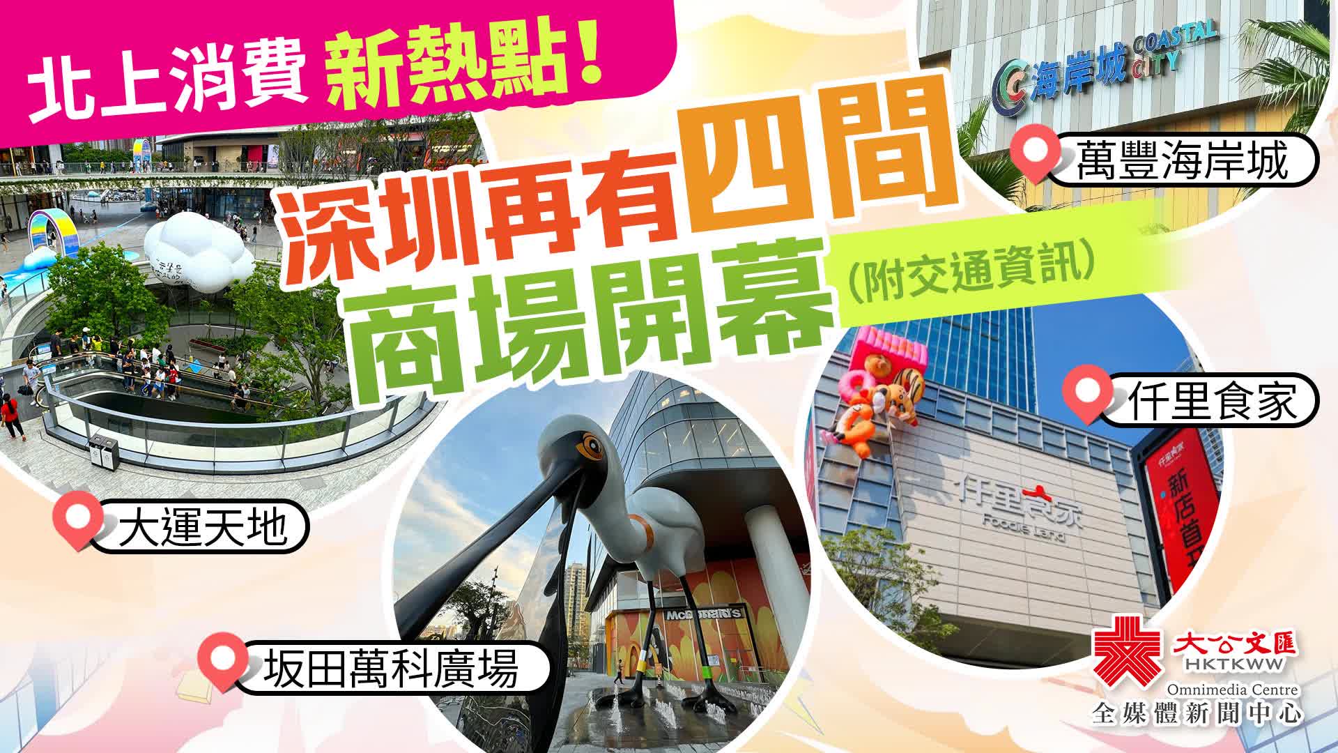 大公文匯全媒體報道,2024年下半年,深圳有多個全新大型商場開幕,勢為北上港人帶來全新的購物體驗,包括龍崗區的大運天地、坂田萬科廣場、寶安區的仟里食家、萬豐海岸城購物中心。現立即了解這些新商場有什麼好玩好吃吧!