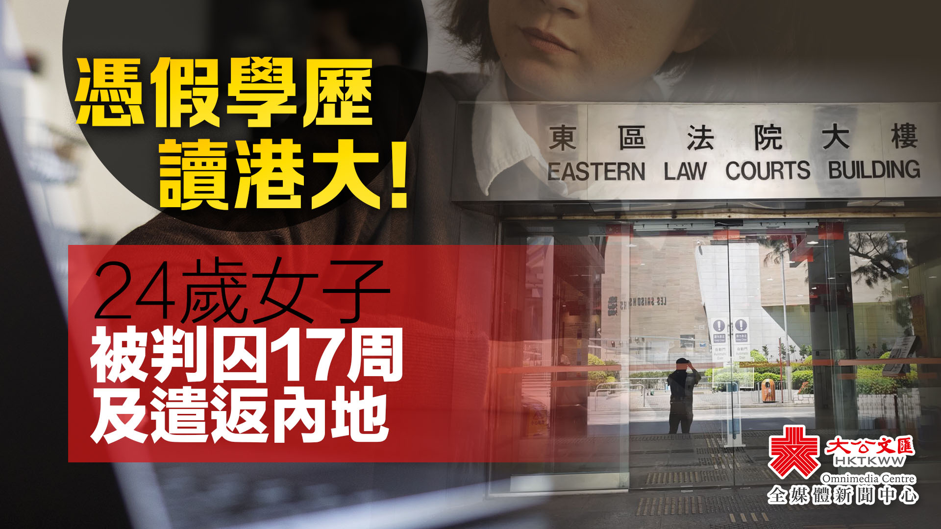 大公文匯全媒體報道,一名24歲的內地女子以「美國康乃爾大學」的假學歷報讀港大金融碩士課程。被告今日(17日)上午於東區裁判法院承認為取得入境證而安排作出虛假陳述。裁判官曾宗堯判刑時斥被告不能妄想能瞞天過海,判囚17周,但因被告由6月22日開始還柙,遂判可即時釋放,並遣返內地。