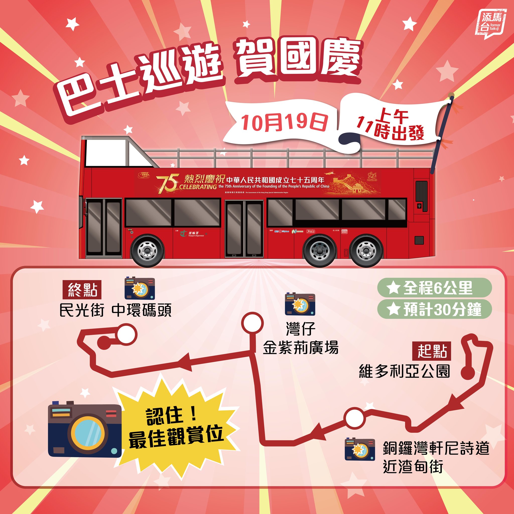 關鍵詞:國慶75周年巴士巡遊維園