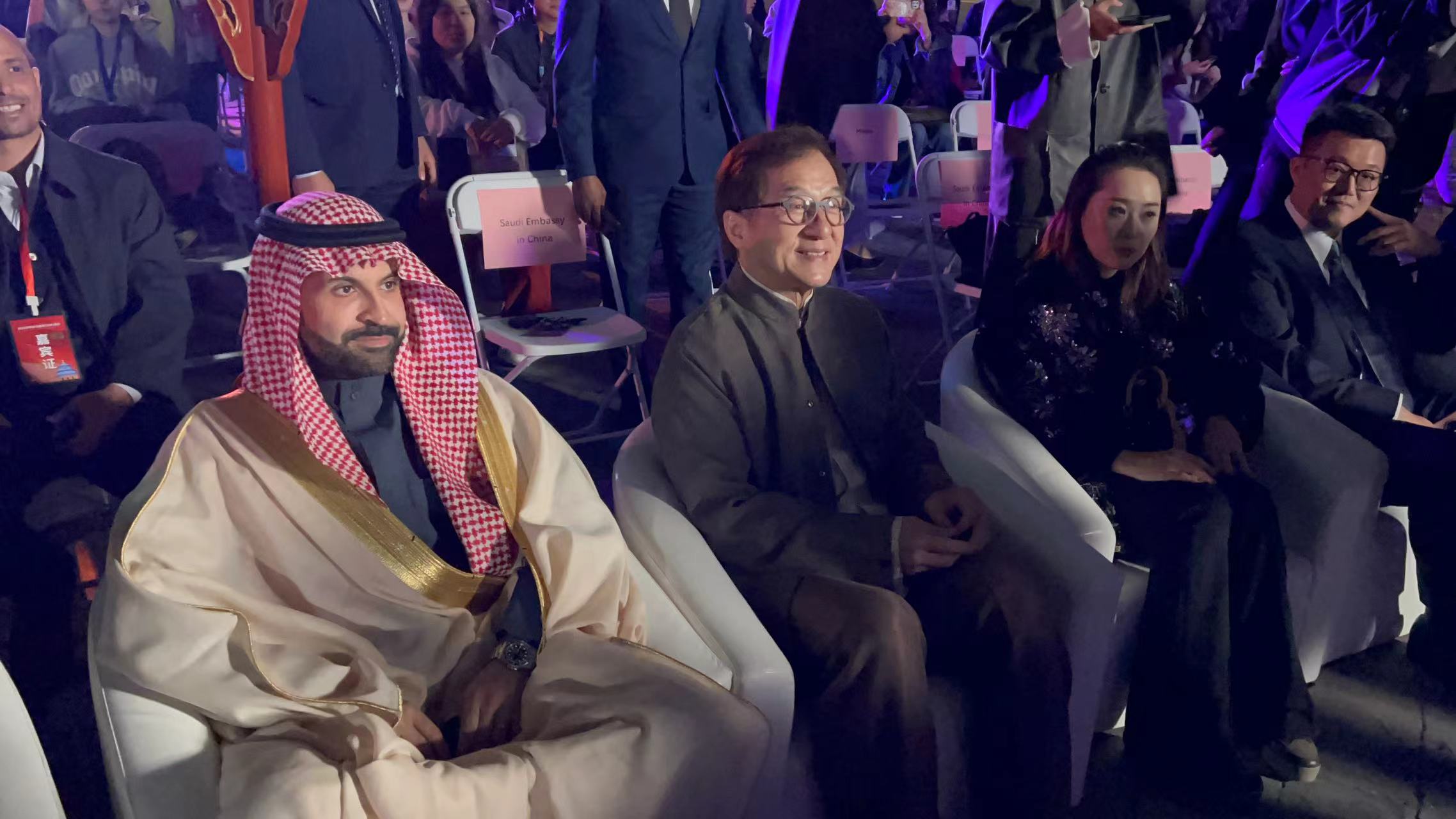 中沙兩國藝術家們共同帶來精彩絕倫的舞台劇《燈籠傳奇》,美輪美奐的舞台布景、精湛的表演,讓觀眾們沉浸在一個充滿奇幻與浪漫的故事之中。國際巨星成龍坐在貴賓席上,目光專注而充滿興趣,時而隨着節奏輕輕點頭,被這份來自遙遠國度的藝術魅力深深吸引。他不時地與身旁的沙特代表親切交談,引來雙方會心的笑聲,使得這場交談氣氛輕鬆愉快。