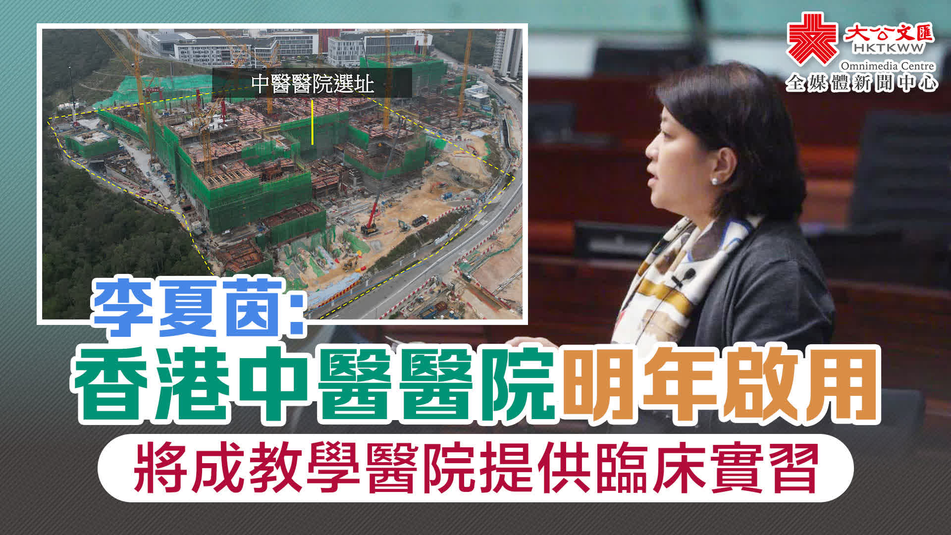 李夏茵指出,自開展醫院建造工程以來,醫衞局一直與建築署及中醫醫院的承辦機構和營運機構積極地推進各項開院籌備工作。中醫醫院將帶領香港中醫藥發展,並以香港為「窗口」,推動中醫藥國際化。中醫醫院將會由醫療服務、教學及培訓、科研、多方協作及創造健康價值等方面去推動中醫藥發展。醫院將提供純中醫、以中醫為主及中西醫協作模式的門診及住院服務,並提供6個中醫分科服務,包括中醫內科、中醫外科、中醫婦科、中醫兒科、中醫骨傷科及中醫針灸科。