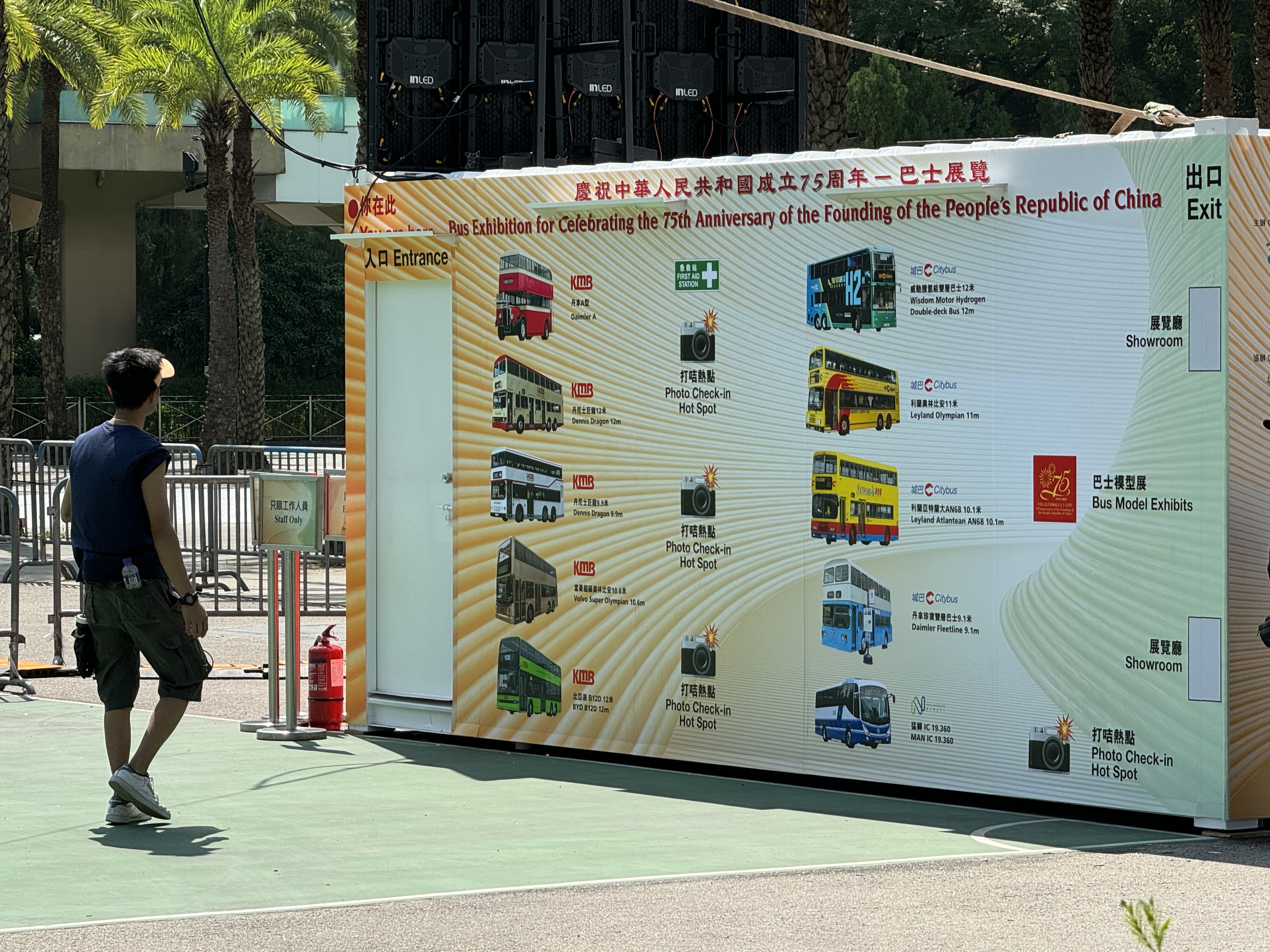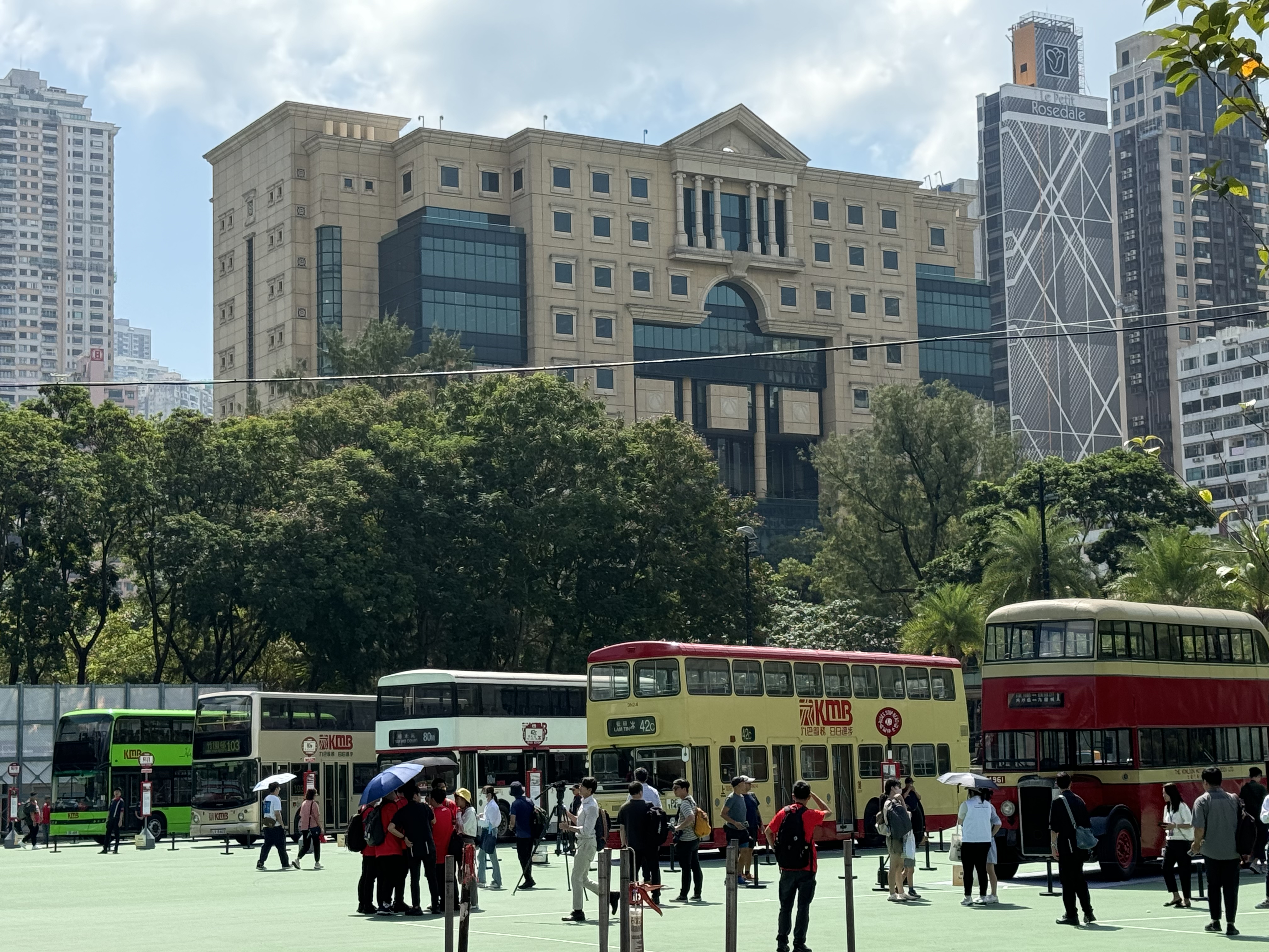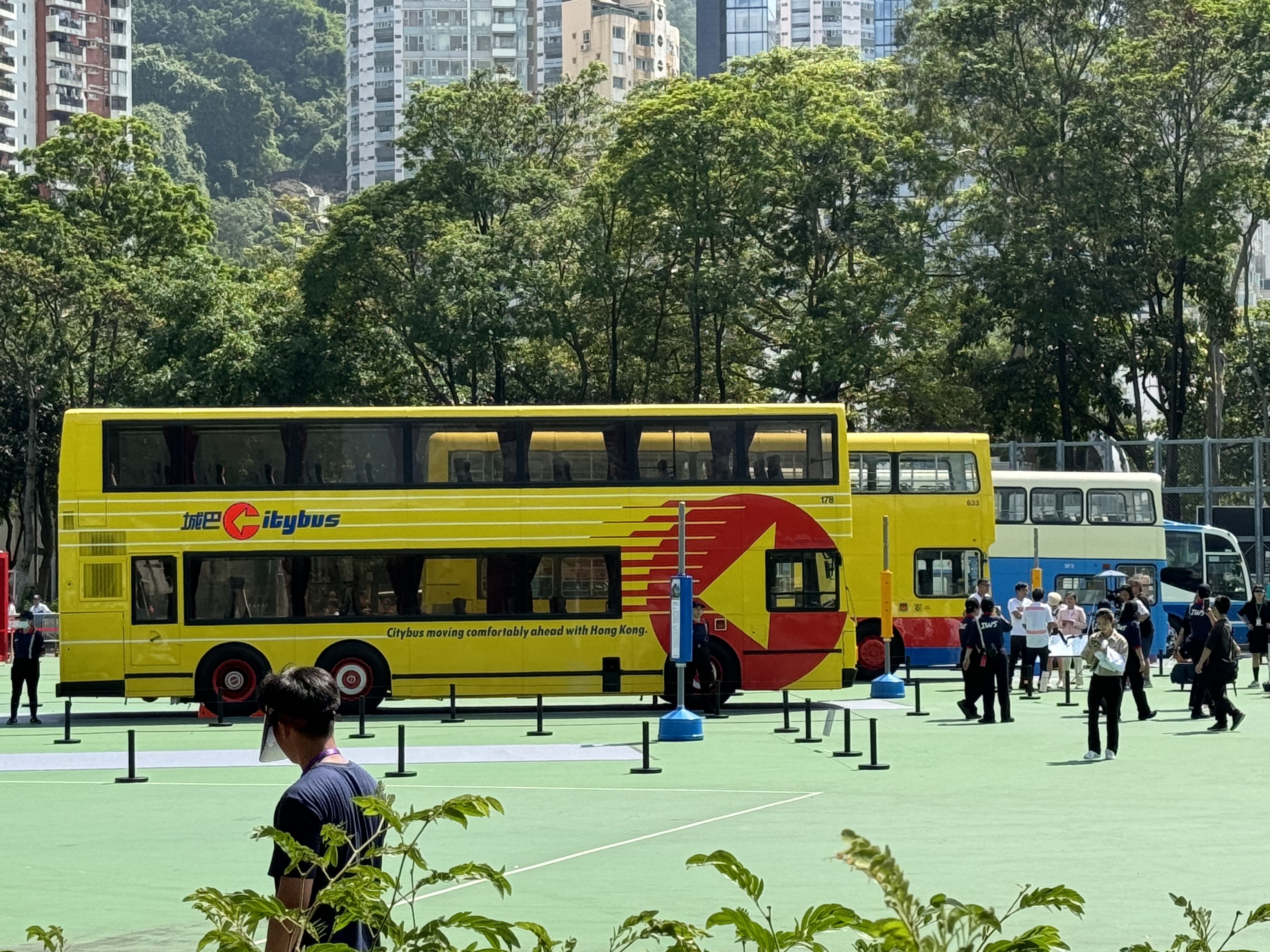 大公文匯全媒體報道,為慶祝中華人民共和國成立75周年,運輸署於今日(19日)至22日舉行「巴士往昔 拾一回憶」巴士巡遊暨展覽,展出10輛退役和現役巴士,包括75年前引入的第一代雙層巴士,俗稱「烏嘴狗」的「丹拿A型」巴士,以至最新引入的國產雙層新能源巴士。其中8輛巴士組成車隊進行巡遊,由維園出發,途經英皇道、菲林明道、龍和道等,以中環民光街作為終點。記者今日在現場見到,有巴士迷一早到維園外等候,現場人頭湧湧氣氛濃。