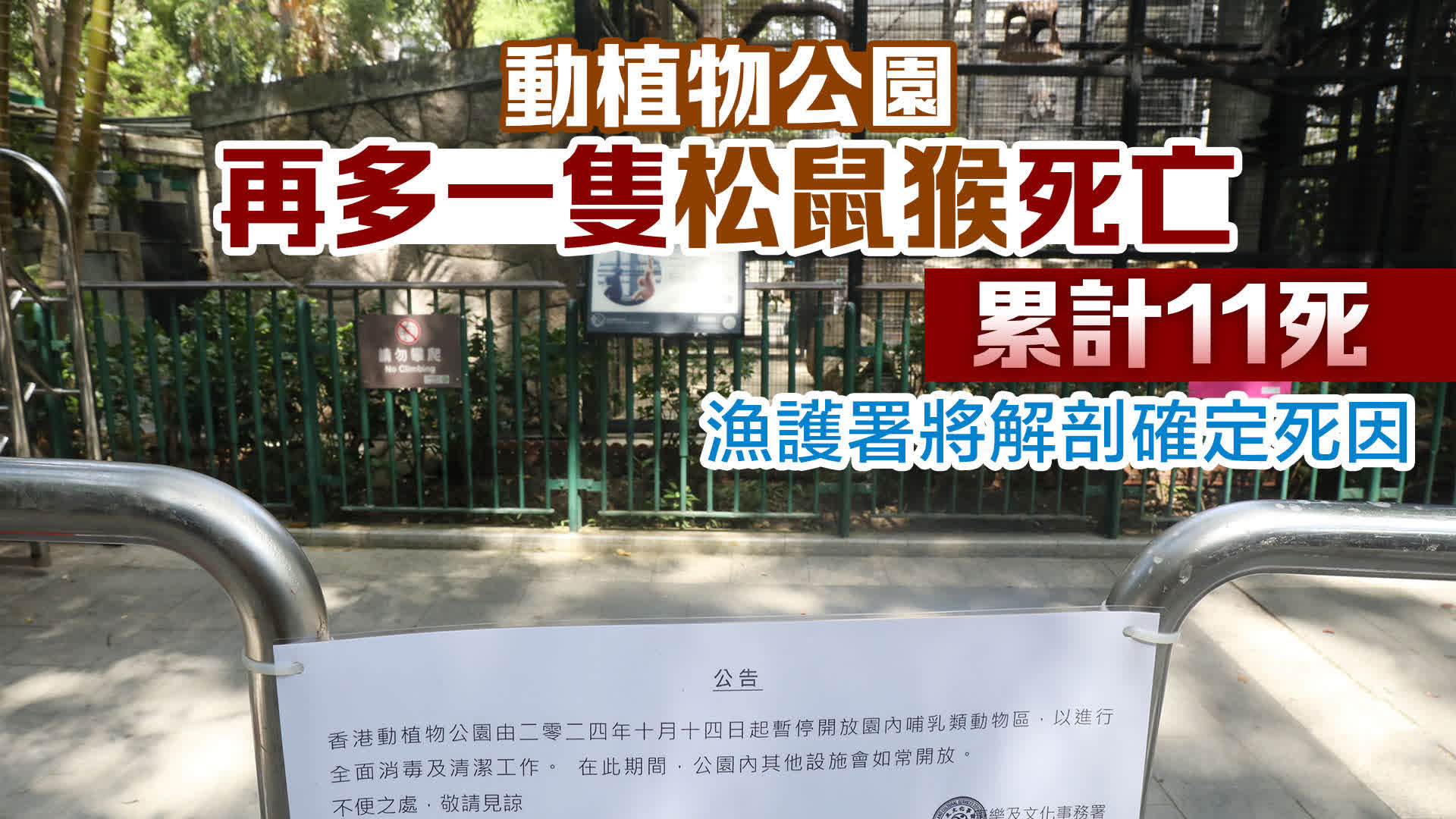 大公文匯全媒體報道,近日,香港動植物公園發生多起猴子死亡事件,引起社會廣泛關注。康文署今日(20日)表示,香港動植物公園另一隻接受隔離觀察的松鼠猴今日死亡,漁農自然護理署將會進行動物屍體解剖化驗,以確定其死因是否與早前死亡的其他猴子相同。