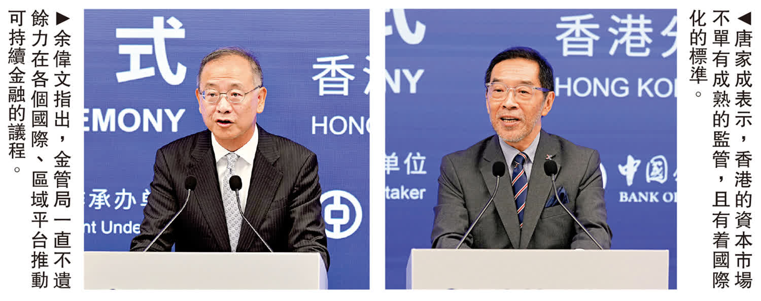 一年一度於北京舉行的「金融街論壇年會」,今年在香港設立分會場。金管局總裁余偉文出席閉幕式致辭時表示,這體現了各界對香港可持續金融市場的認可。他指出,金管局一直不遺餘力在各個國際、區域平台推動可持續金融的議程,與其他成員分享香港的實踐經驗。