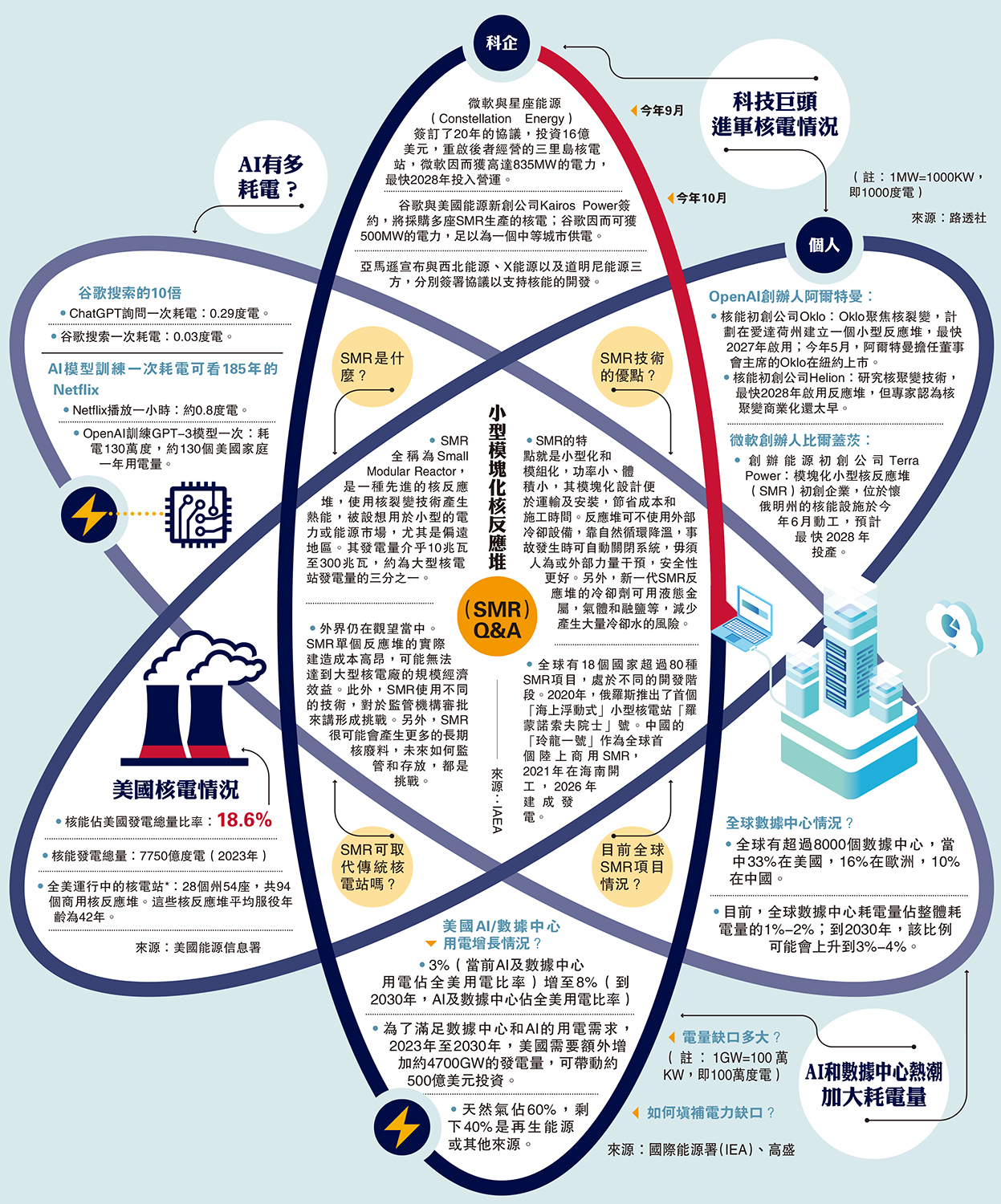 科技公司實際上已經是風能和太陽能的最大買家,但這還不足以滿足數據中心全天候的需求,於是這些企業轉向核能。谷歌已向凱洛斯能源公司訂購了6至7座小型模塊化核反應堆,成為首家啟用新核電站為其數據中心提供清潔能源的科企。