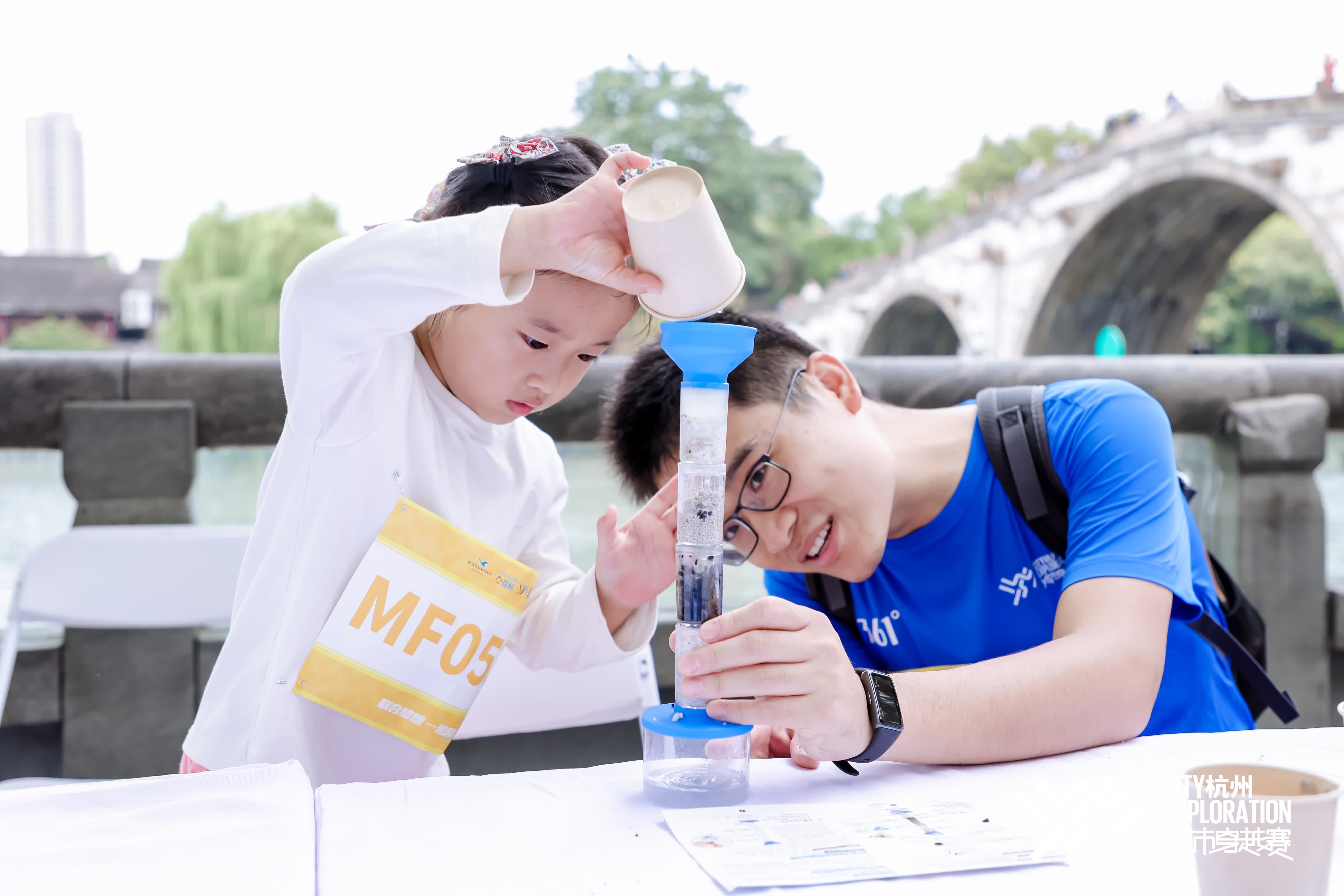 比賽當日,杭州的秋風輕拂着運河沿岸,賽事鳴槍後,參賽者們滿懷熱情「綠色出行」,分散前往富義倉遺址公園、拱宸橋畔、西溪國家濕地公園、浙江省科技館、中國扇博物館等十多個任務點,完成糧食大作戰、心肺復甦及AED急救培訓、清潔水資源等將杭州歷史、人文與聯合國可持續發展目標相結合的活動任務,深入感受杭州的深厚底蘊與現代活力。