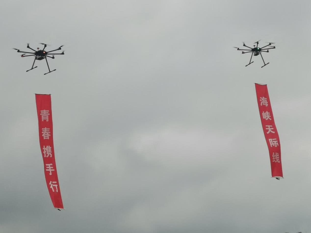 日前,「海峽天際線 青春攜手行」中華青少年生活交流(兩岸公益飛行)活動在成都金堂縣三溪鎮天府橘鄉景區舉行,在蓉台青台商及兩岸無人機愛好者近100人參加活動。
