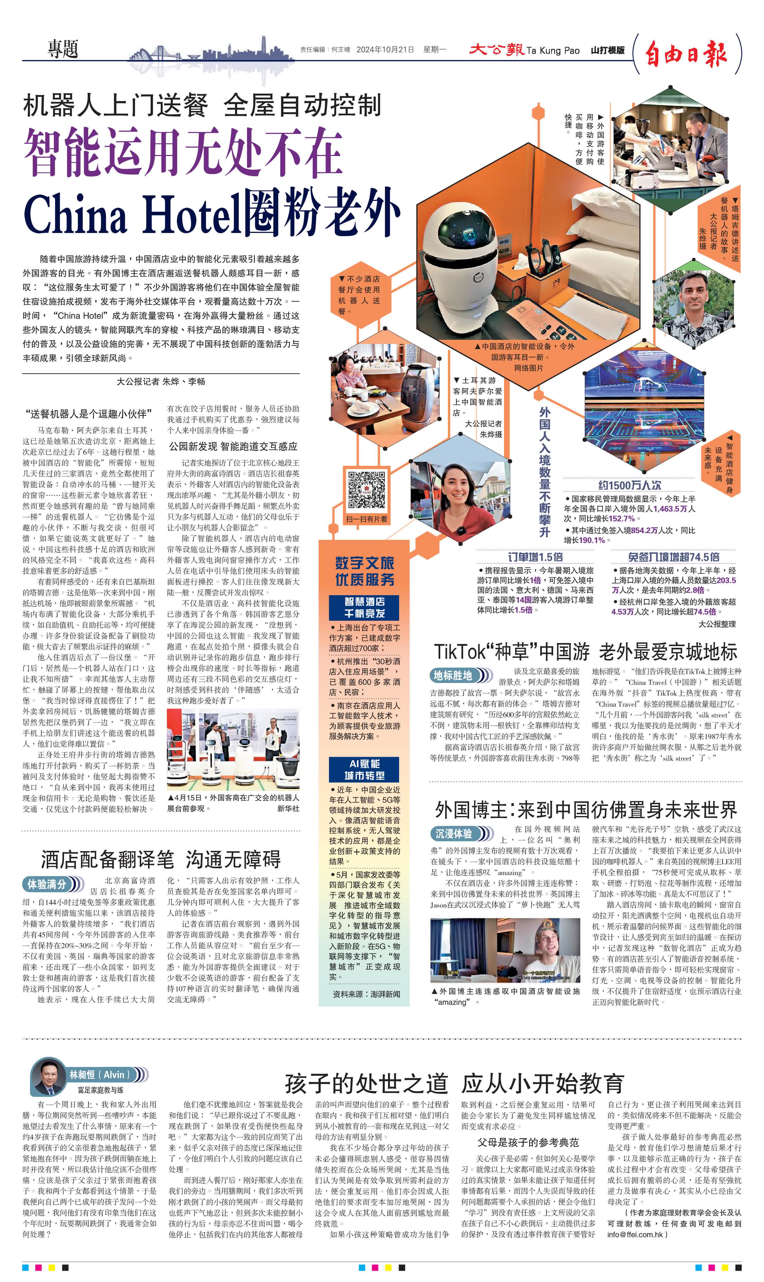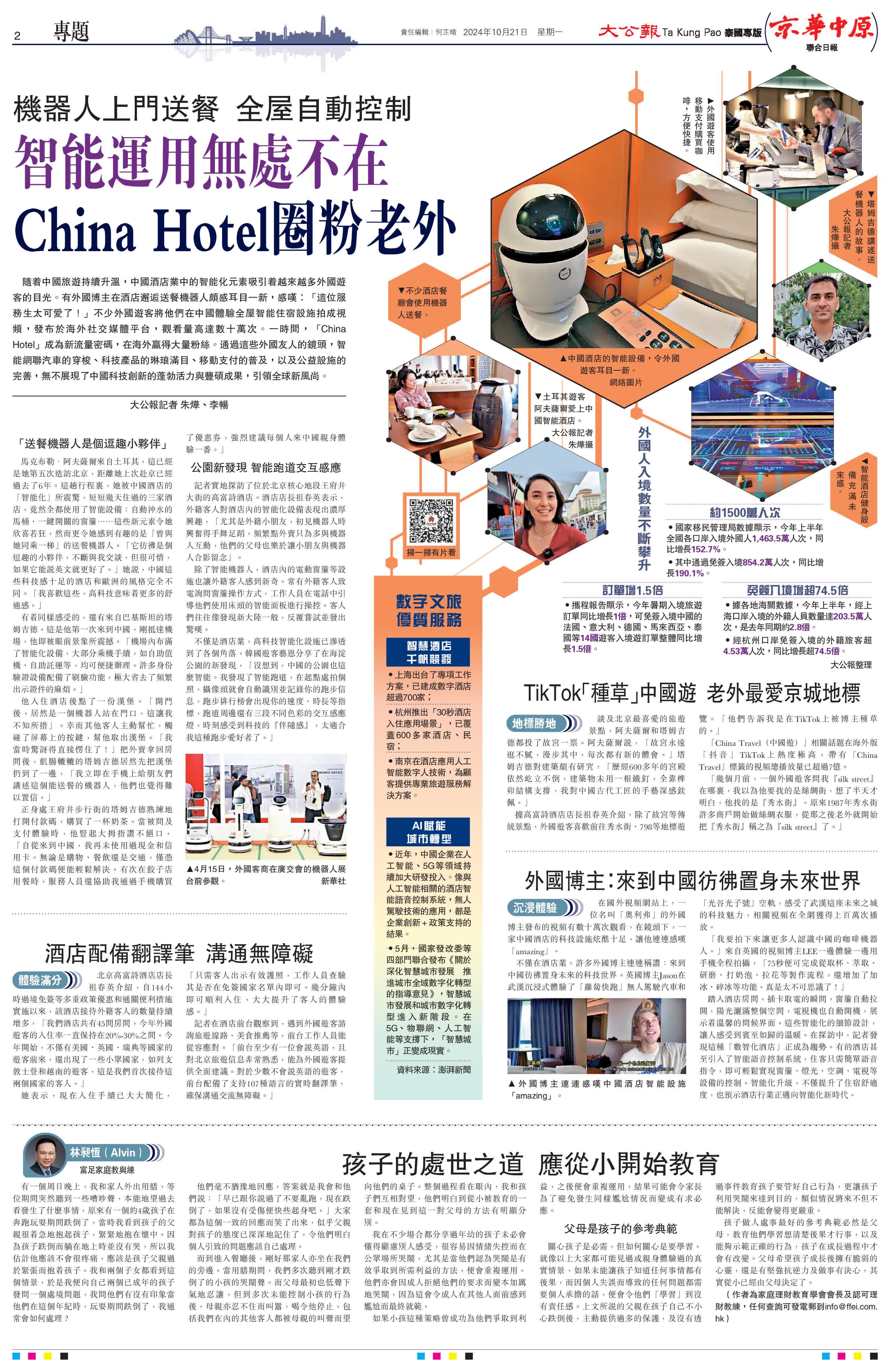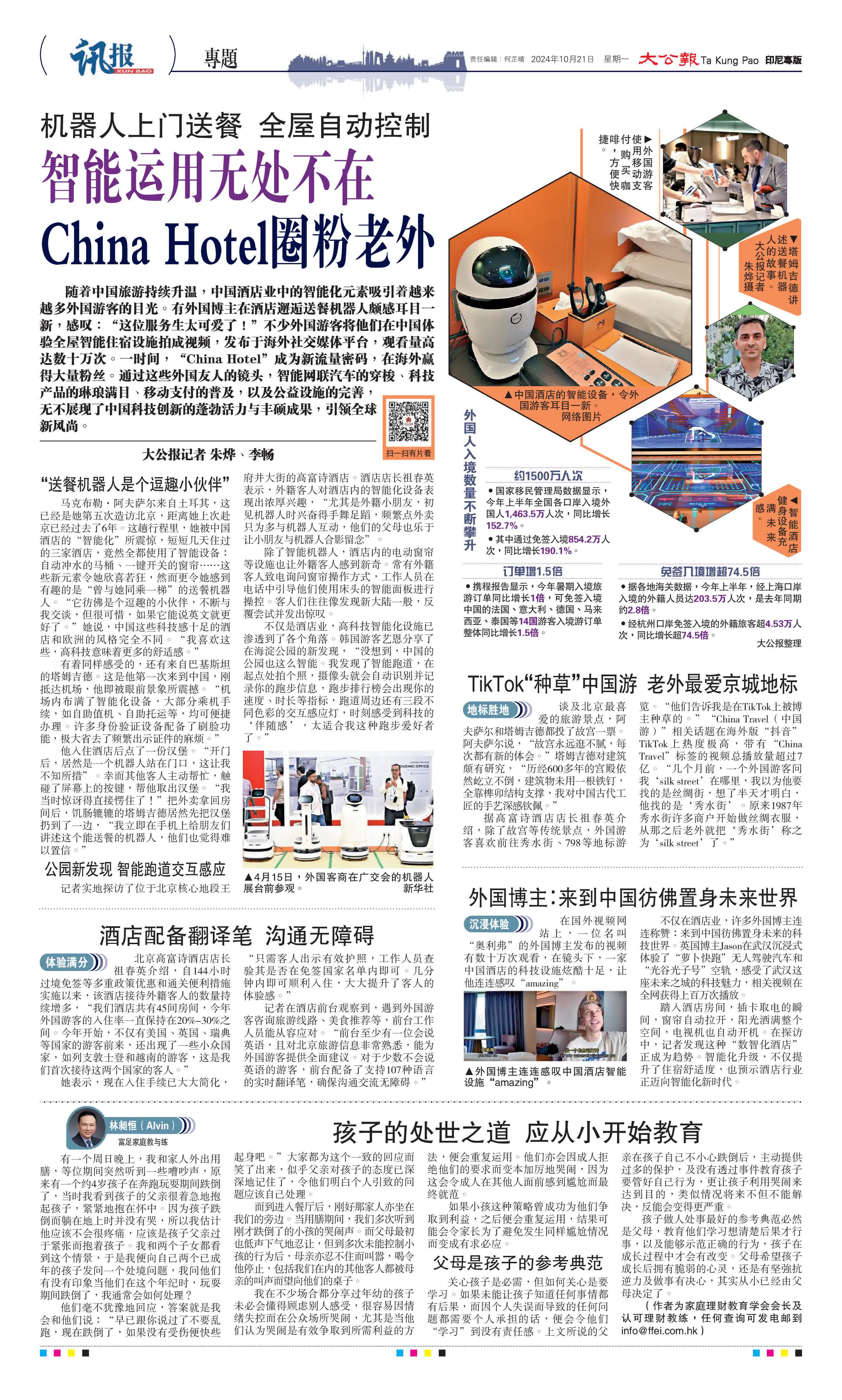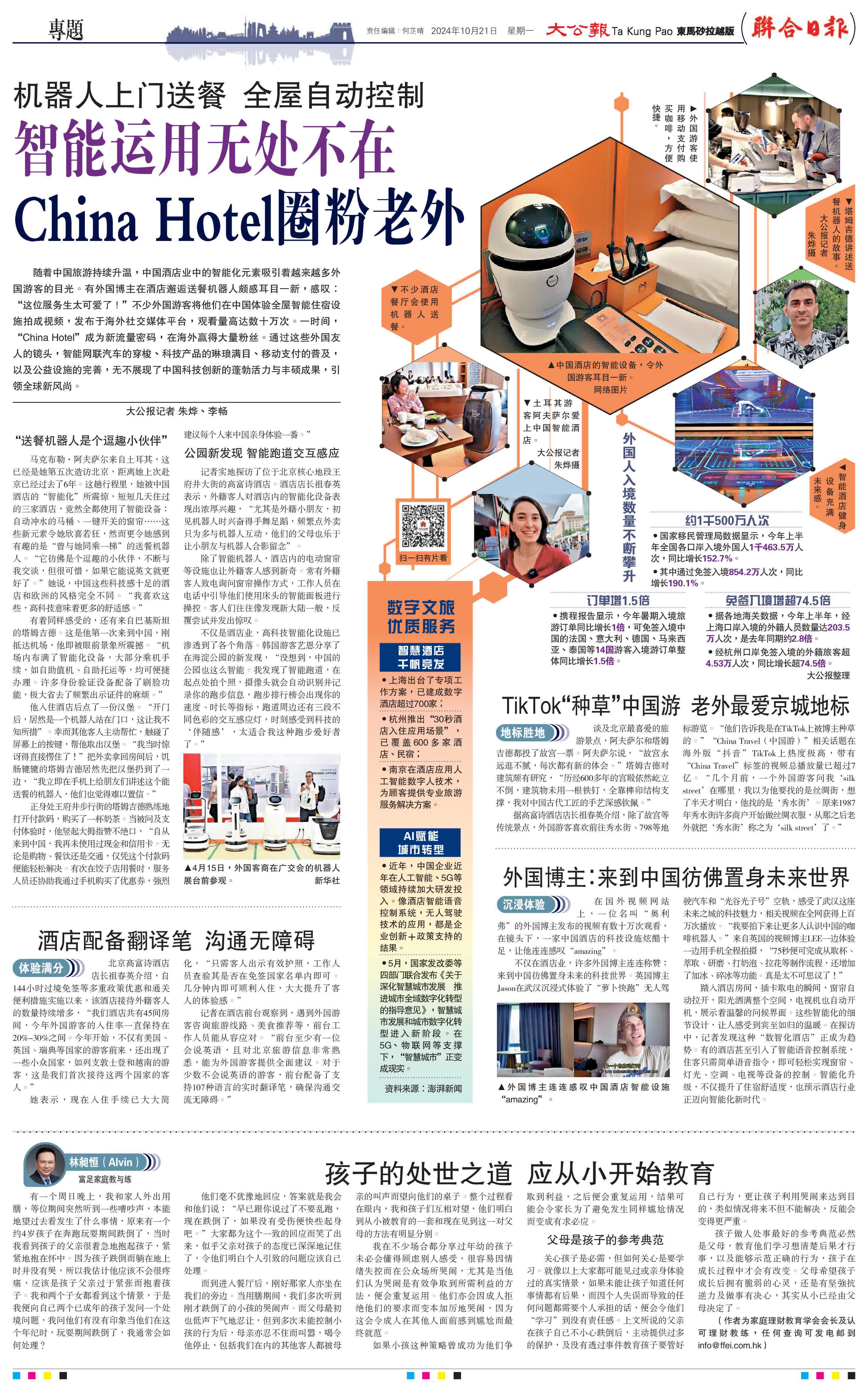 機器人上門送餐,全屋自動控制……10月21日,《聯合日報》《京華中原》《訊報》《自由日報》等多家海外華媒聚焦吸引越來越多外國遊客的中國酒店業中的智能化元素,並對通過外國友人鏡頭中智能網聯汽車的穿梭、科技產品的琳琅滿目、移動支付的普及,以及公益設施的完善,展現了中國科技創新的蓬勃活力與豐碩成果,引領全球新風尚等內容進行了報道。