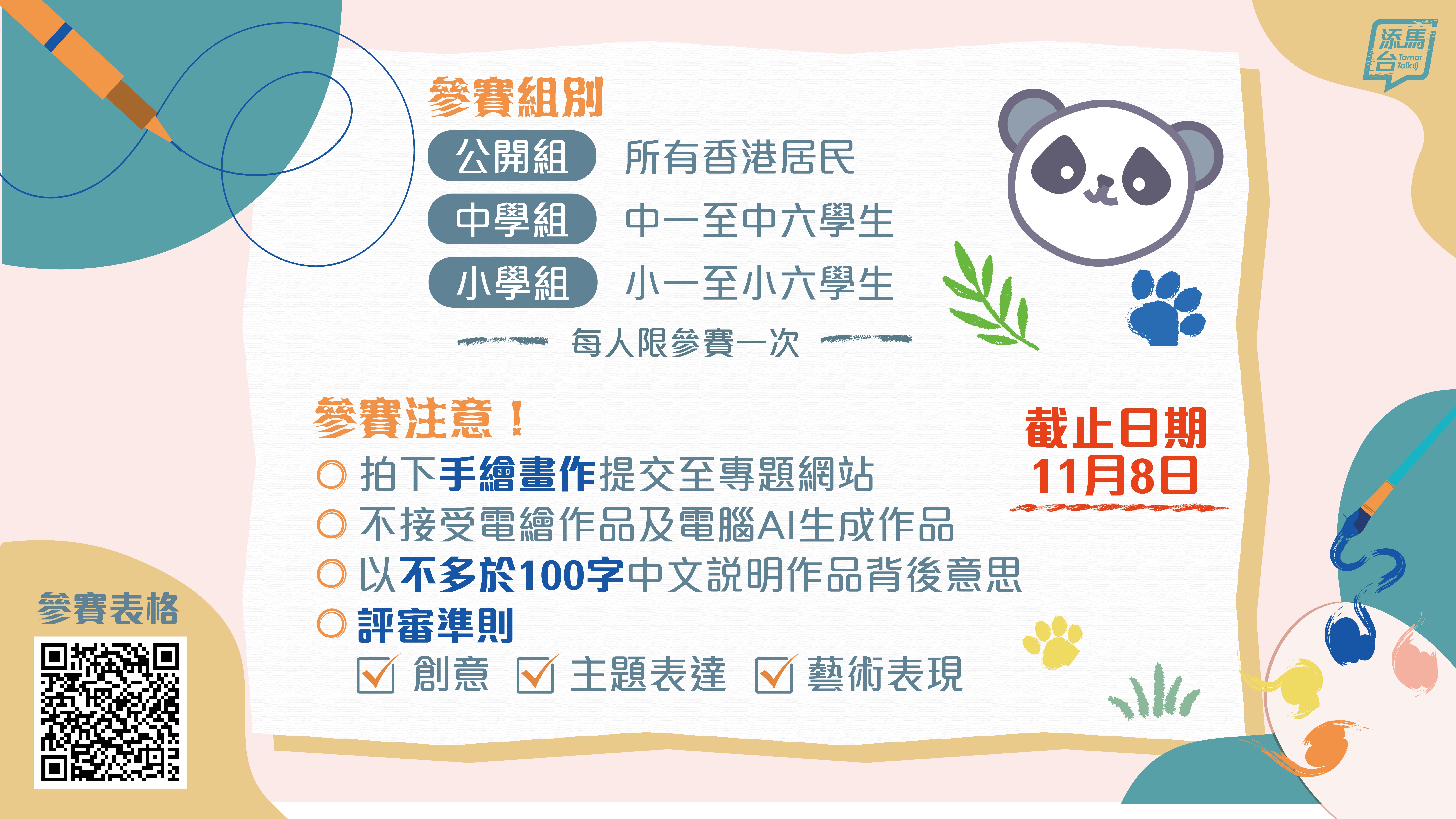為了熱烈歡迎由中央政府贈送的一對大熊貓加入香港大家庭,大熊貓繪畫比賽今日(10月21日)開始接受投稿,誠邀市民參照大熊貓的照片和生活片段,描繪牠們可愛的一面。看圖了解參賽詳情。