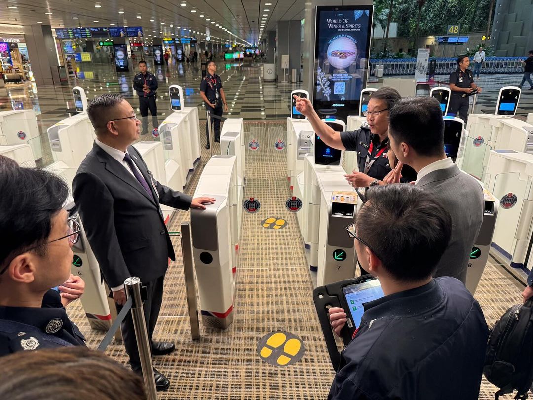 大公文匯全媒體報道,入境處今日(21日)於社交平台發帖,指入境處處長郭俊峯近日率領同事出訪新加坡,訪問團首先同新加坡移民與關卡局(Immigration & Checkpoints Authority)會面,就出入境事務及創新科技應用交換經驗,並參觀新加坡樟宜機場,以及兀蘭陸路關卡,了解當地最新的自助出入境設施及人流管理策略。