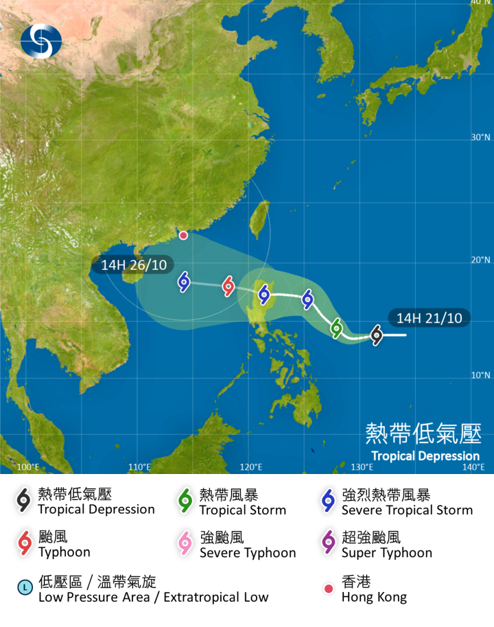 在下午4時,位於菲律賓以東海域的熱帶低氣壓集結在馬尼拉以東約1090公里,預料向西移動,時速約18公里,移向呂宋以東海域。天文台指,該熱帶氣旋會在未來兩三日逐漸增強並移向呂宋一帶,本周後期有較大機會進入南海東北部,但其後路徑存在變數,可能以偏西方向橫過南海中北部,或採取西北路徑較為靠近華南沿岸。