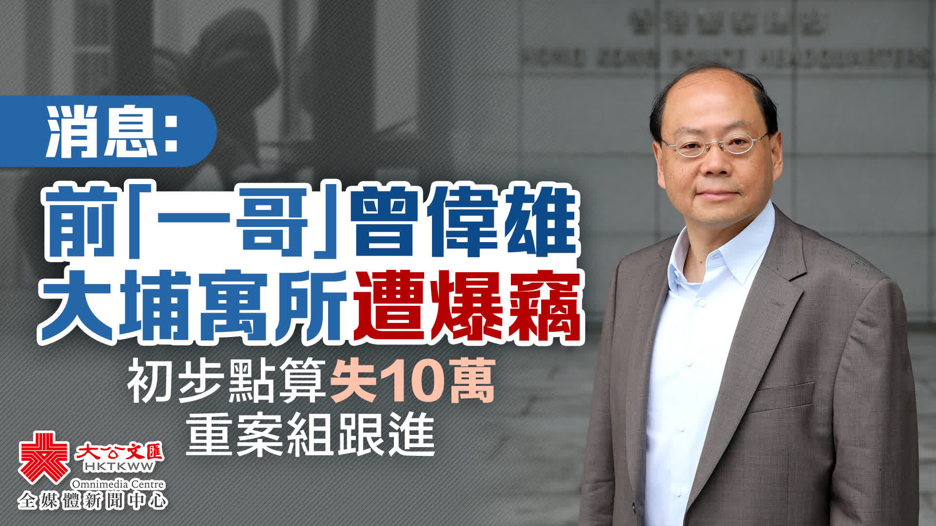 大公文匯全媒體報道,多間港媒今日(21日)相繼爆料,前警務處處長曾偉雄位於大埔的寓所懷疑遭爆竊。