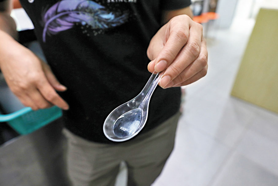 不過,即使店主有心守法,市面環保餐具也非全部合格。中餐廳負責人林女士向記者展示一款透明匙羹,她表示由於顧客對於紙匙投訴頗多,不適合該店的熱湯,她在供應商建議下轉用新款匙羹,「他們說是合格的,檢查後可以用的,我也沒有特別去查。」該款匙羹上印有「01」字樣,疑似常見用於標註PET塑膠製品的號碼,PET多用於製造飲料瓶、餐具等。而政府管制範圍亦包含全部或部分由塑膠製成的指定即棄膠餐具。