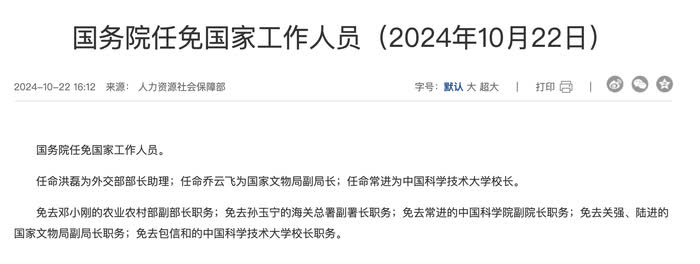 據人力資源社會保障部10月22日消息,國務院任免國家工作人員。