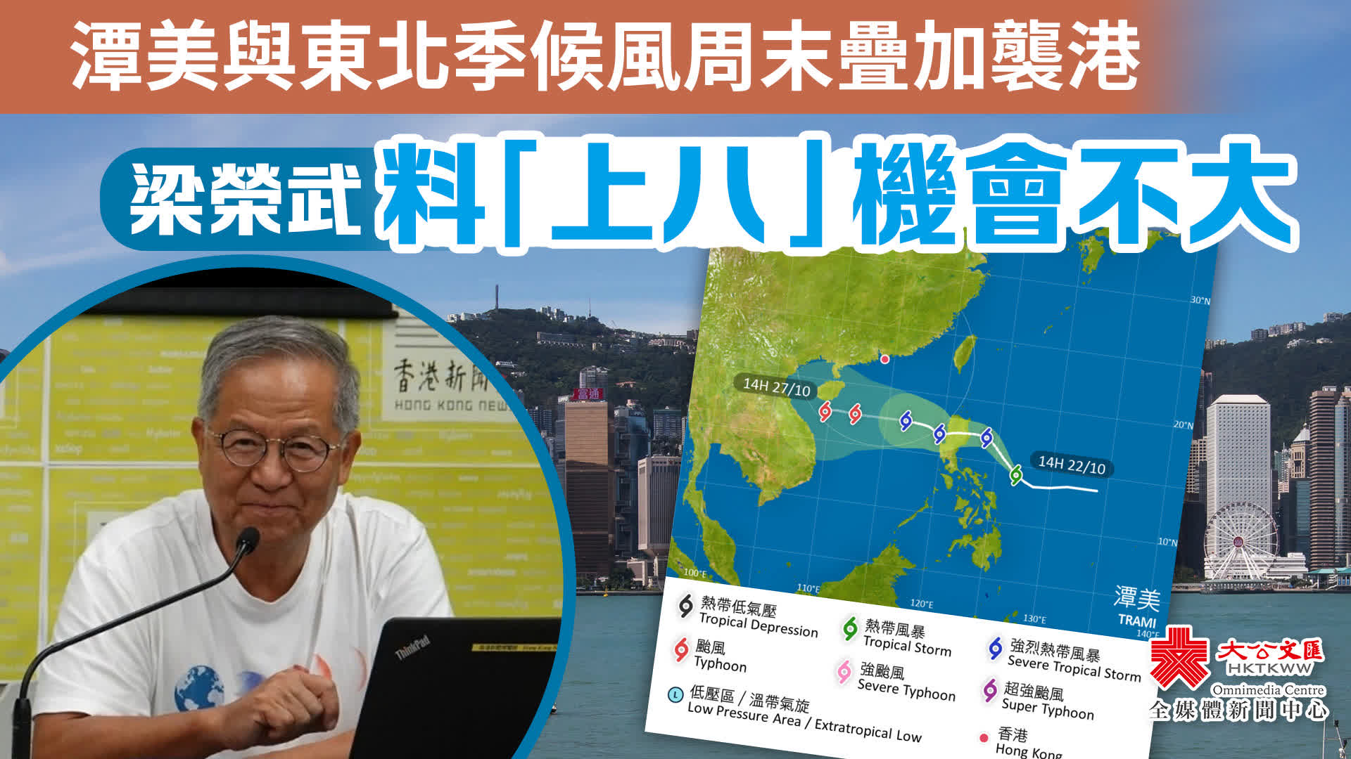梁榮武表示,相信由於是次東北季候風與潭美氣流方向相同,天文台認為二者風力疊加的機會較高。不過目前看來,天文台九天天氣預報可見,香港普遍達烈風風力的機會也不高,所以「上八」的機會相對低。