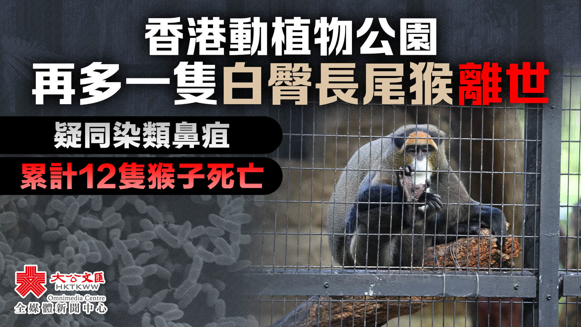 大公文匯全媒體報道,康文署今日(22日)晚間公布,香港動植物公園一隻自10月14日起接受隔離治療的白臀長尾猴今日死亡,發現其器官組織亦有病變。香港動植物公園由10月13日至今共12隻猴子死亡。
