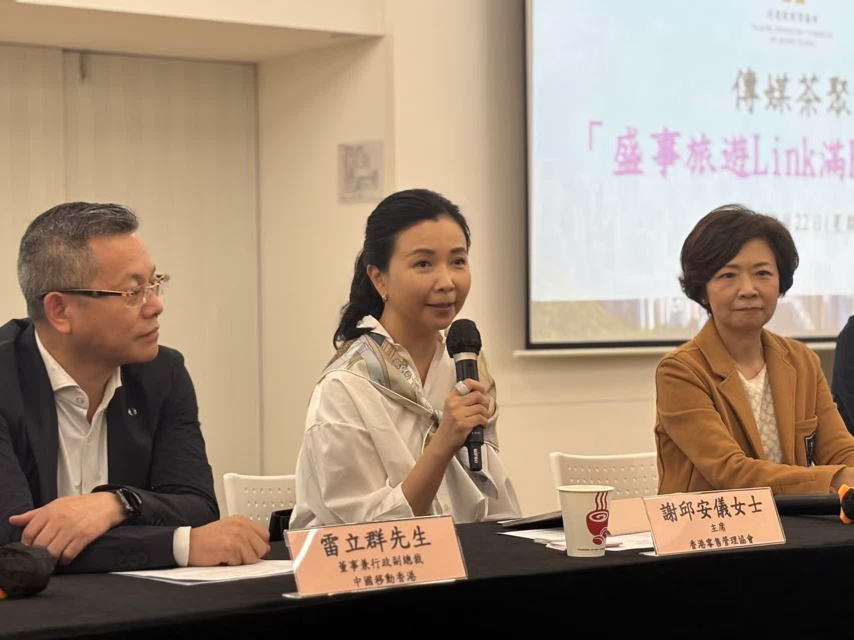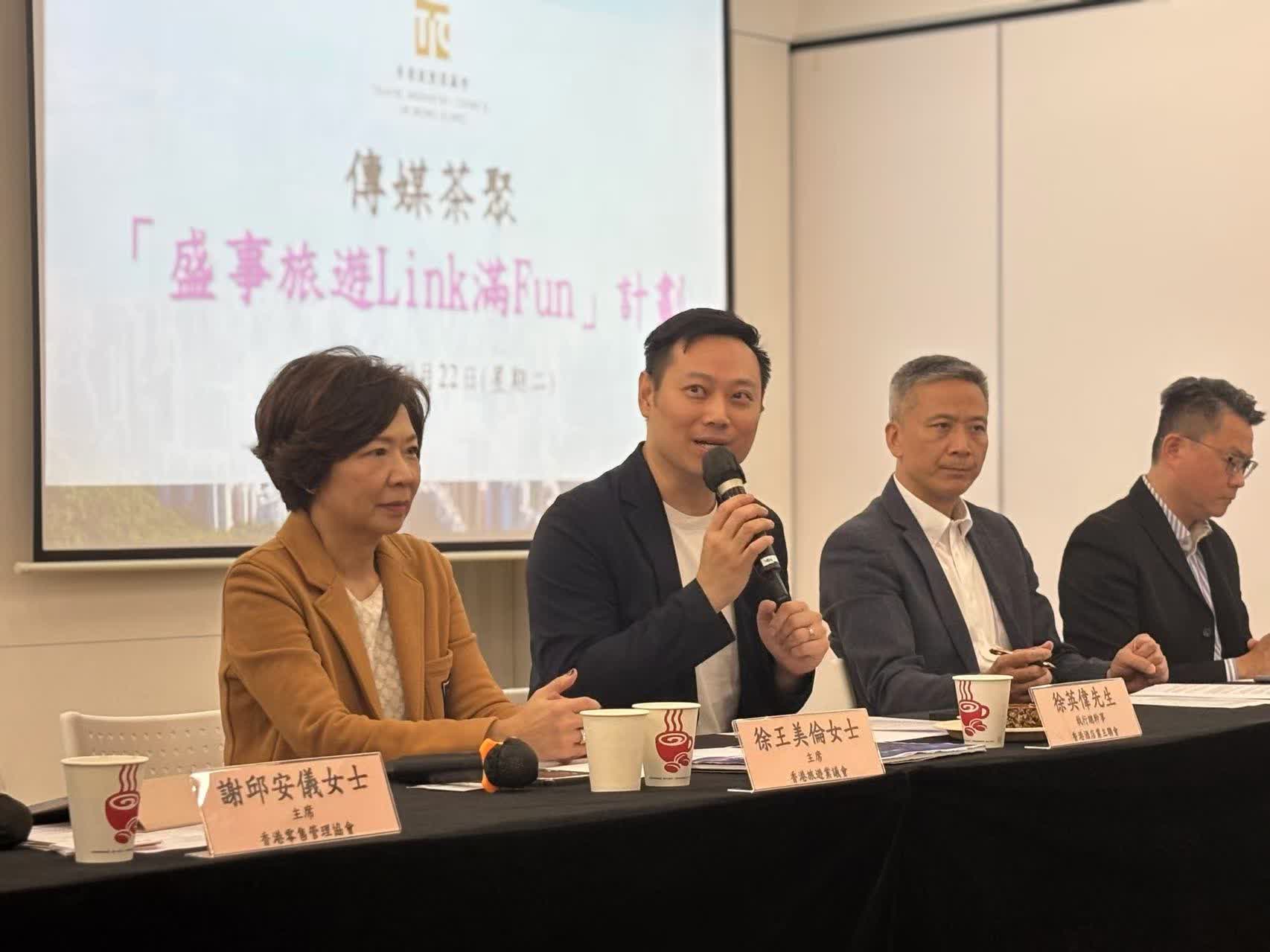 (大公文匯全媒體記者 鄭洢林)香港旅遊業議會(議會)今日(22日)聯同香港酒店業主聯會執行總幹事徐英偉、香港零售管理協會主席謝邱安儀、立法會旅遊界功能界別議員姚柏良,以及中國移動香港董事兼行政副總裁雷立群與傳媒進行茶聚,就「盛事旅遊Link 滿Fun」計劃(計劃)介紹細節。
