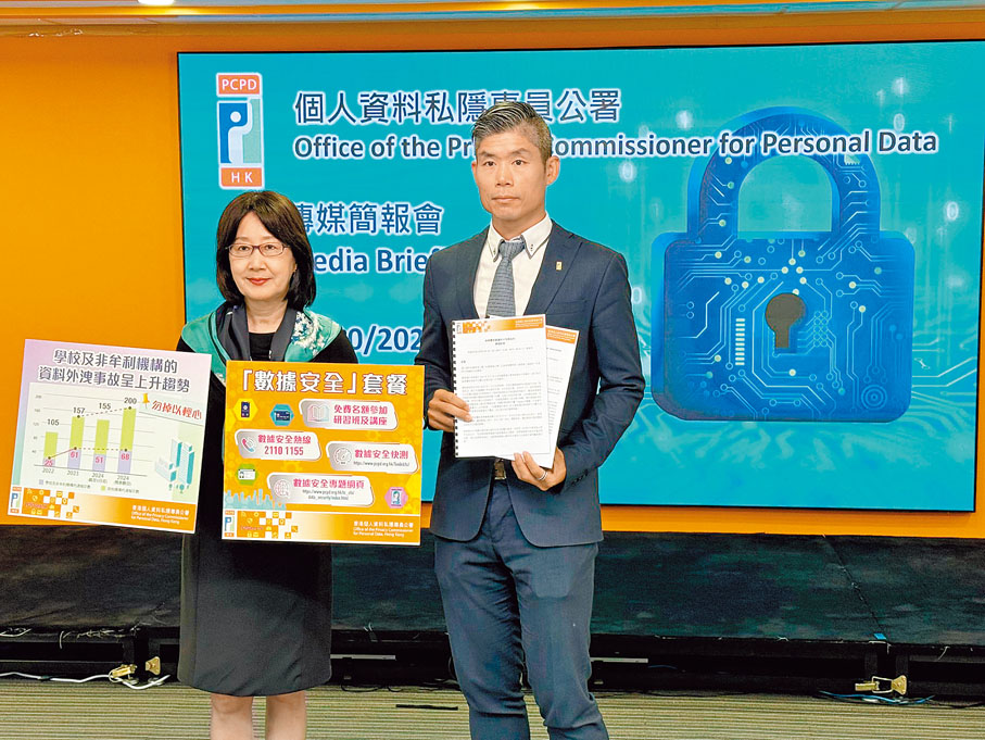她提醒,學校及非牟利機構不能掉以輕心,應該投放足夠資源提升資料保安措施,減低個人資料系統遭受網絡攻擊的風險。私隱專員公署由昨日起推出「數據安全」套餐,參加機構可免費進行「數據安全快測」,評估數據安全措施是否足夠,公署亦將於今年12月分別與教育界及非牟利機構合作舉辦兩場講座。