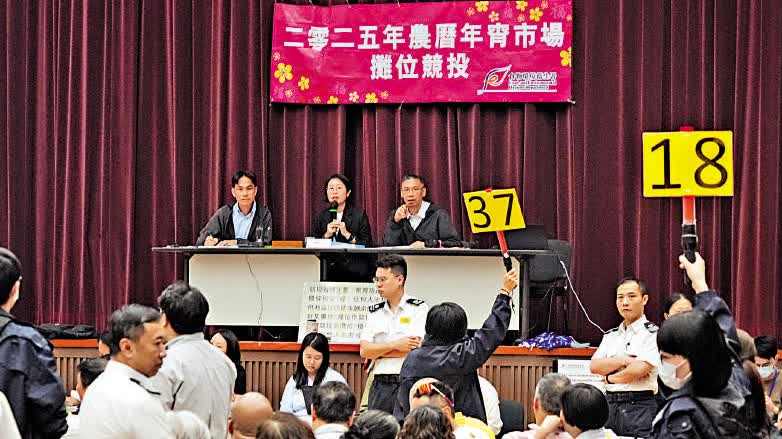 維園年宵攤位昨日競投戰況激烈,快餐攤位D在經過11口價後才成交。各攤檔檔主已開始動腦筋,希望在年宵攤位加入新元素與新產品,吸引客人眼球,推高年宵營業額。