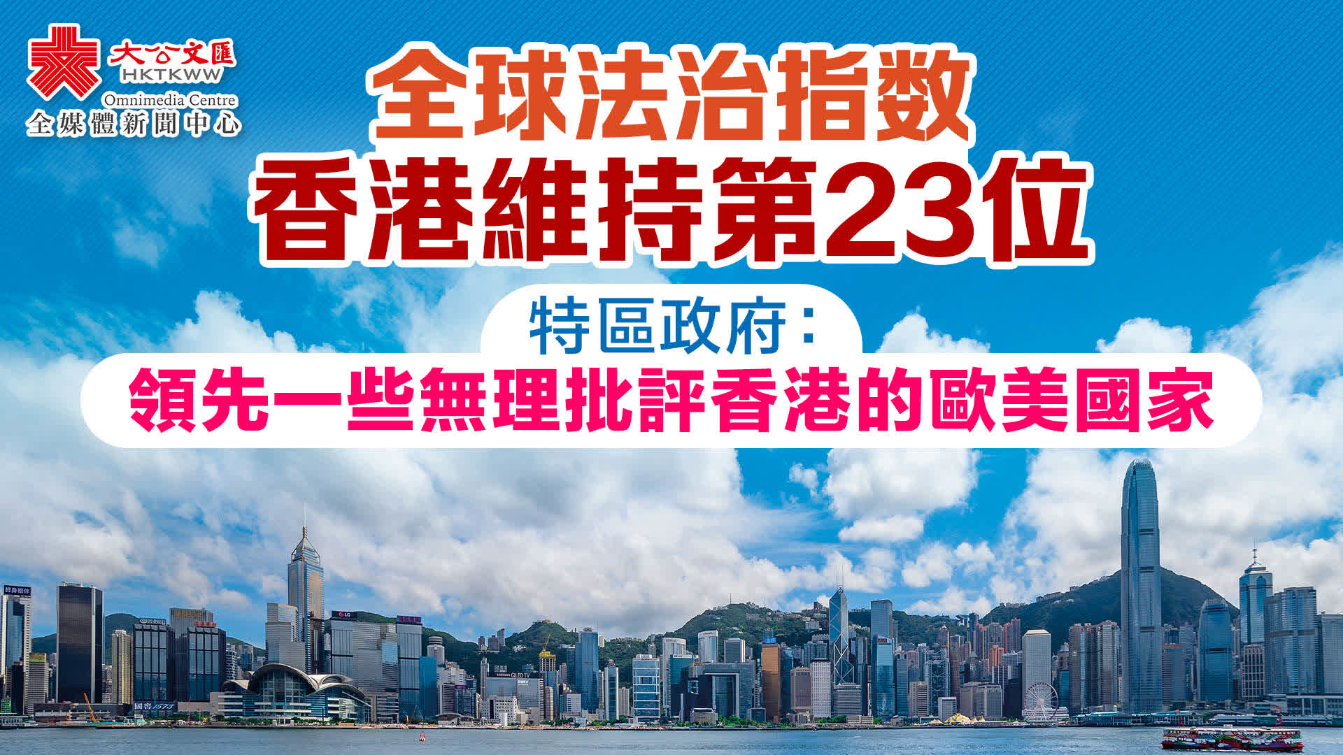 大公文匯全媒體報道,「世界正義工程」公布《2024年法治指數》查詢,香港特區政府發言人今日(23日)回應傳媒指,香港在《2024年法治指數》的排名維持不變,在東亞及太平洋地區繼續排名第六,並在全球142個國家和地區中位列23,整體排名維持高位,並繼續領先於一些不時無理批評香港法治和人權狀況的歐美國家。