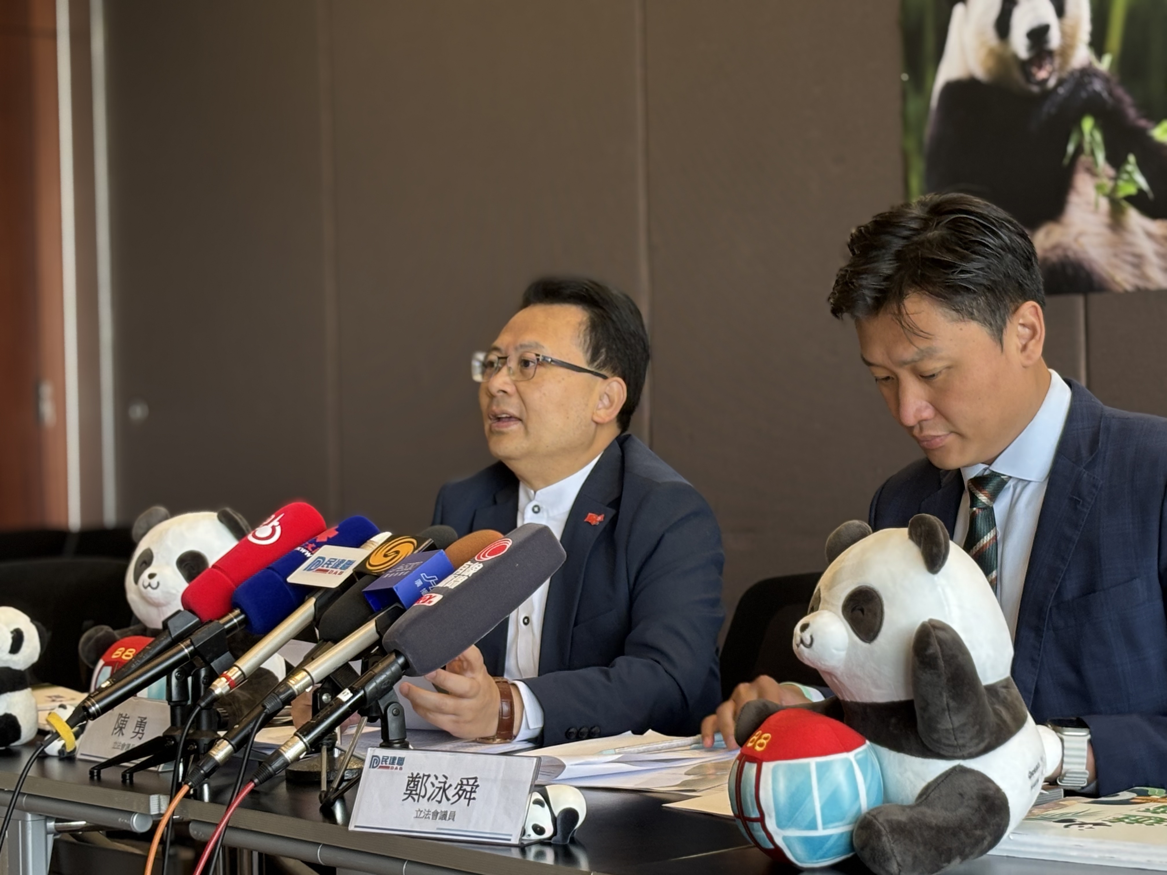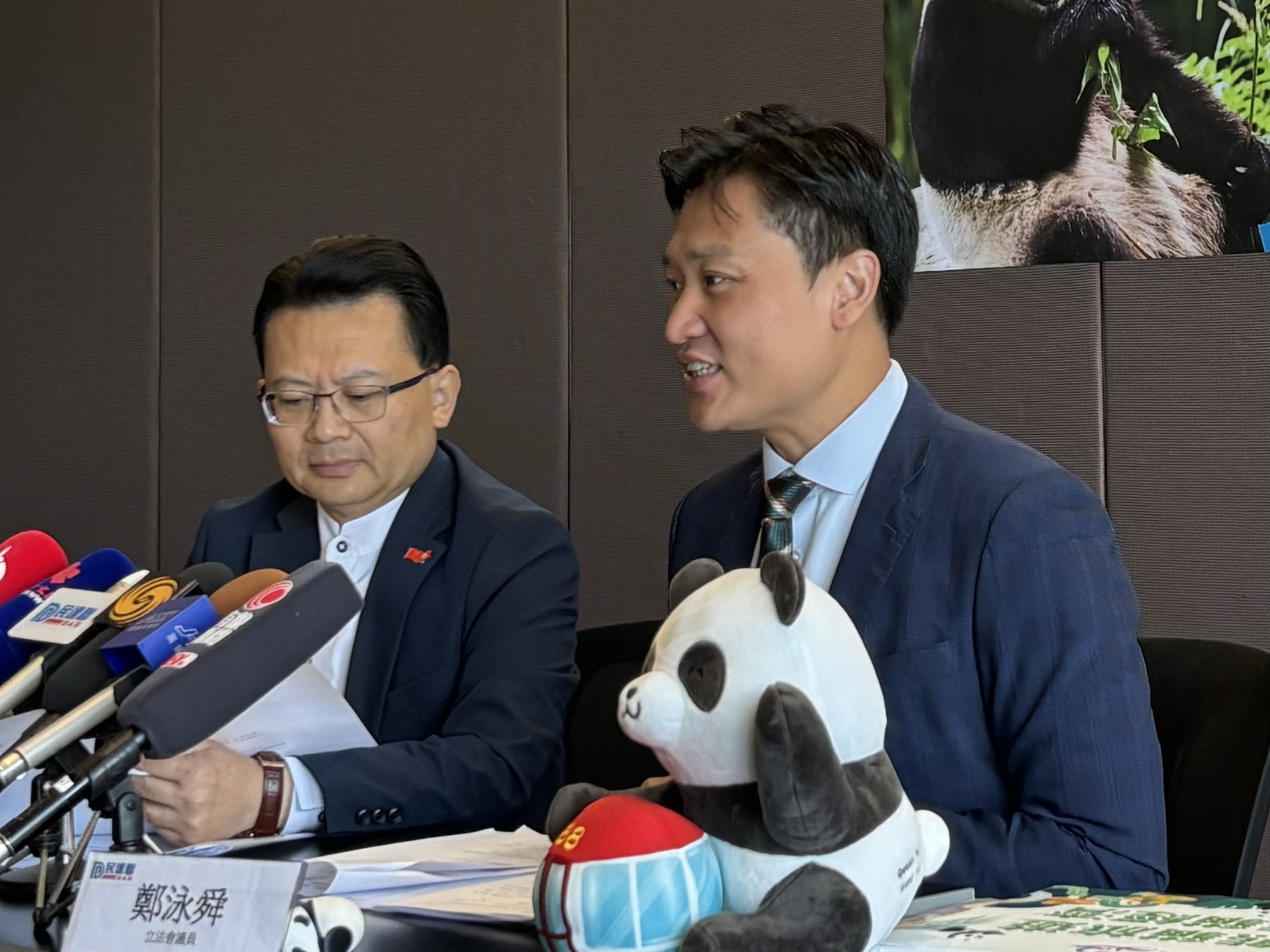 民建聯立法會議員鄭泳舜表示,六成受訪者對香港誕生首對「土生土長」大熊貓感到開心,超過一半受訪者希望到海洋公園探訪大熊貓,並希望海洋公園推出與熊貓有關的創意產品,一半受訪者表示若海洋公園設置頻道直播大熊貓的日常生活,將有興趣觀看,近四成受訪者贊成政府撥出資源,鼓勵及資助民間團體推動熊貓經濟,近六成受訪者表示有親友來港,會推薦他們到海洋公園探望大熊貓,超過六成受訪者認為中央先後三次送贈大熊貓予香港,是體現了中央對香港的支持。