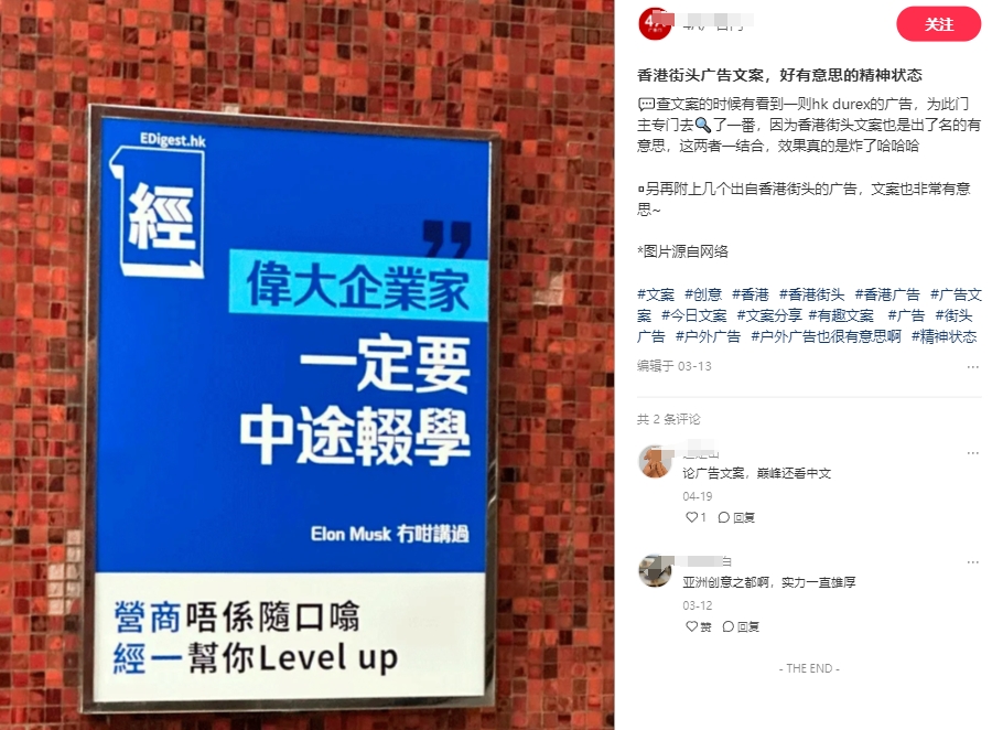 你能相信嗎,有人喜歡香港的一條理由竟是「hk那些有趣有料的廣告語」。