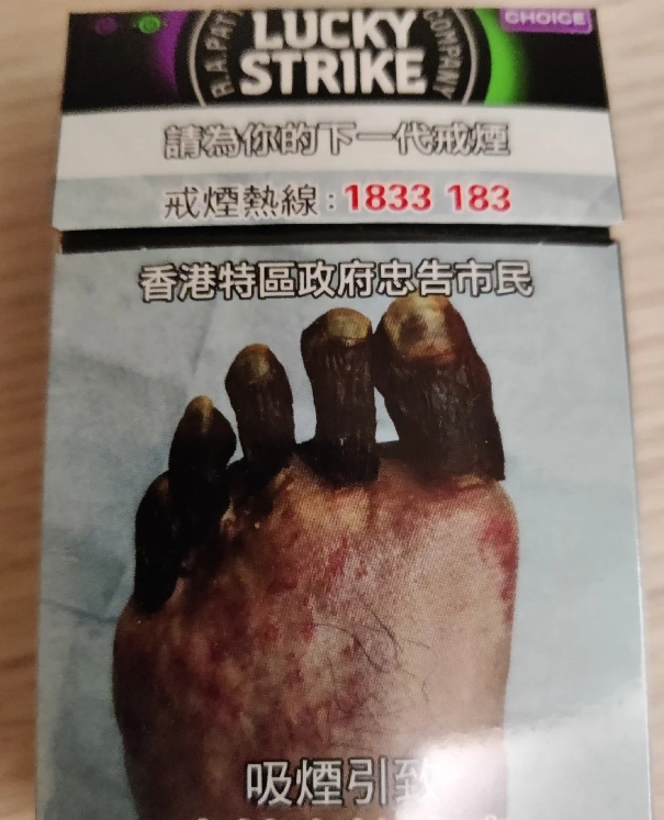煙盒上的禁煙廣告文案和圖片赤裸裸,生怕嚇不着你。