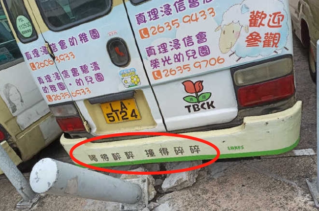 公交車後的禁止酒駕提示,也不失風趣。