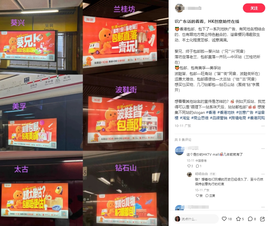 就連內地的某寶廣告語到了香港也學得格外調皮。