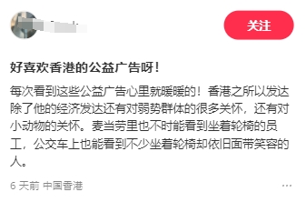 網友評價,每次看到香港的廣告,就感覺心裏暖暖的。