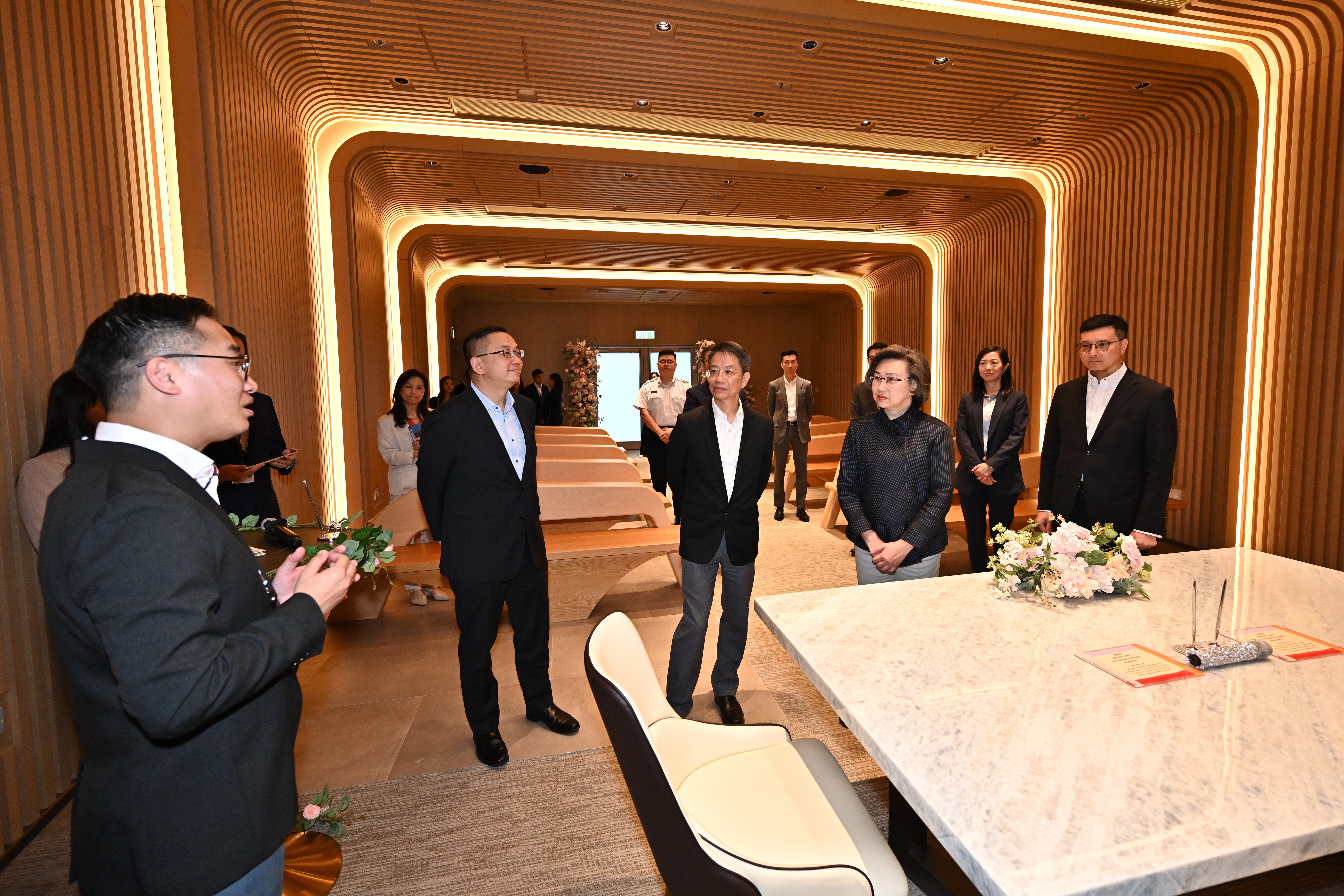 楊何蓓茵接着參觀設於總部內新增設的婚姻登記處,其婚禮禮堂設計新穎,戶外設有多個攝影熱點如心形花圃等,供新人及賓客拍照留念,自今年六月啟用以來深受歡迎。