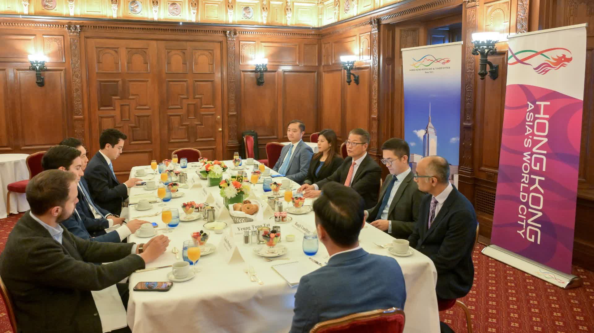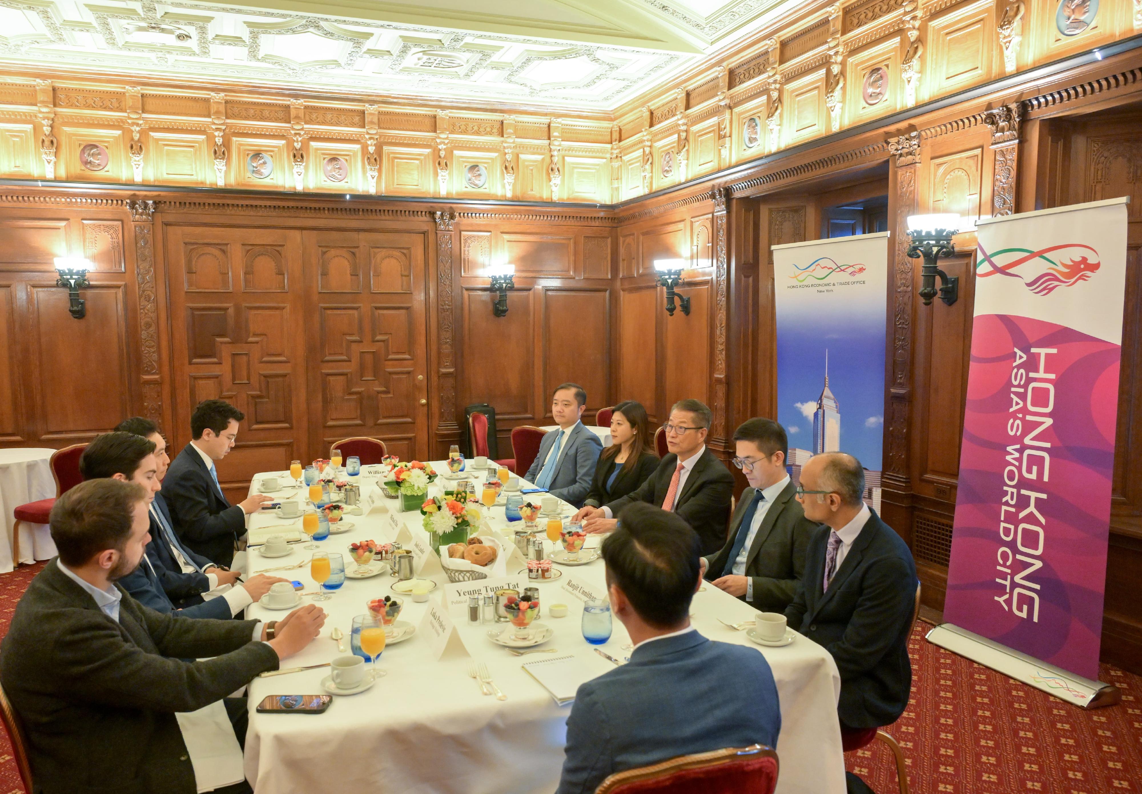 早上,陳茂波與數家家族辦公室的代表舉行早餐會,介紹香港作為全球領先資產及財富管理樞紐的多項獨特優勢,以及在這領域的最新發展情況。