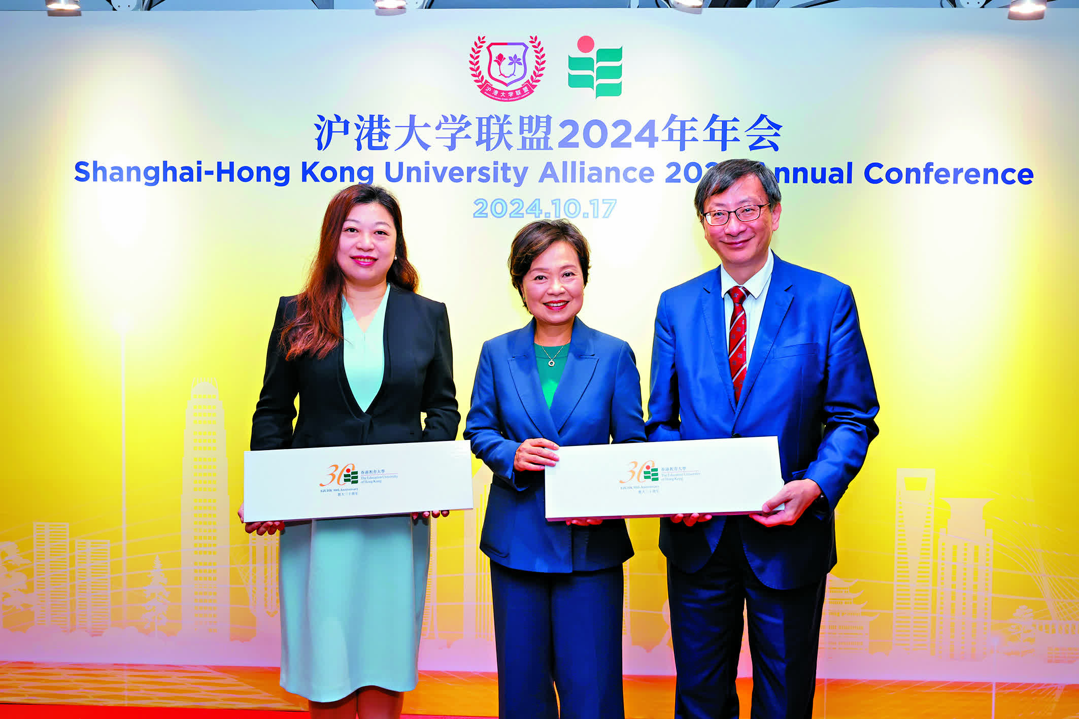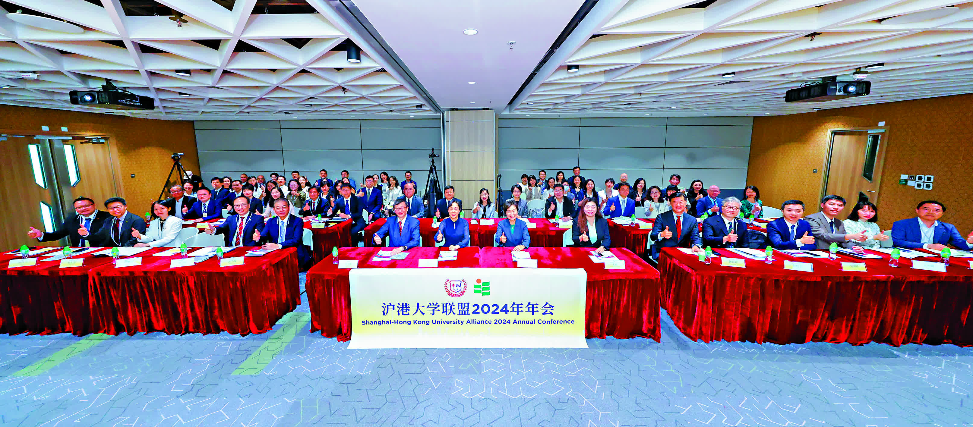 今屆年會是滬港大學聯盟成立以來,首次在香港舉行實體會議,蔡若蓮表示這標誌着兩地大學合作邁向新里程。香港和上海的大學都具備學術水準卓越、科研實力雄厚等優勢,滬港合作正是強強聯手,發揮互利共贏的作用。年會當日,教大特設教育創新成果展,展出多項獲國際獎項的科研產品,包括榮獲2023年日內瓦國際發明獎金獎及2023年加拿大國際發明創新大獎金獎的「智能斜視角度測量系統」、2024年美國硅谷國際發明節金獎、特別獎、2024年加拿大國際發明創新大賽金獎、評審特選獎的「社交機器人」等等,教育大學的科研團隊在場向上海各大學的代表團示範產品運作,介紹量產及應用成果等,現場討論氣氛熱烈。