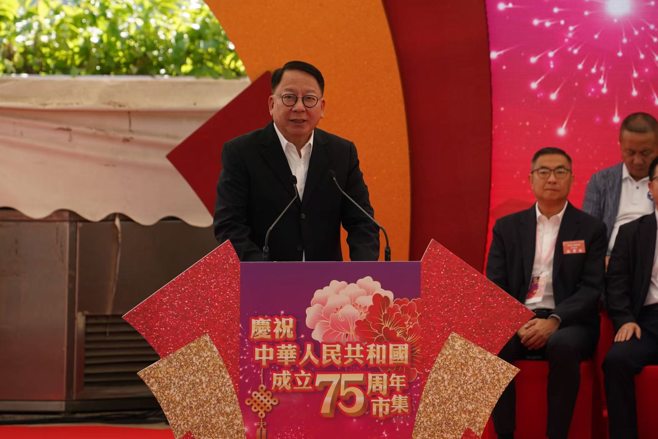 大公文匯全媒體報道,慶祝中華人民共和國成立75周年市集今日(25日)開幕,政務司司長陳國基致辭表示,同鄉社團一直發揮橋樑作用,推動香港與內地在不同領域的交流合作,推動香港發展,促進社區和諧。