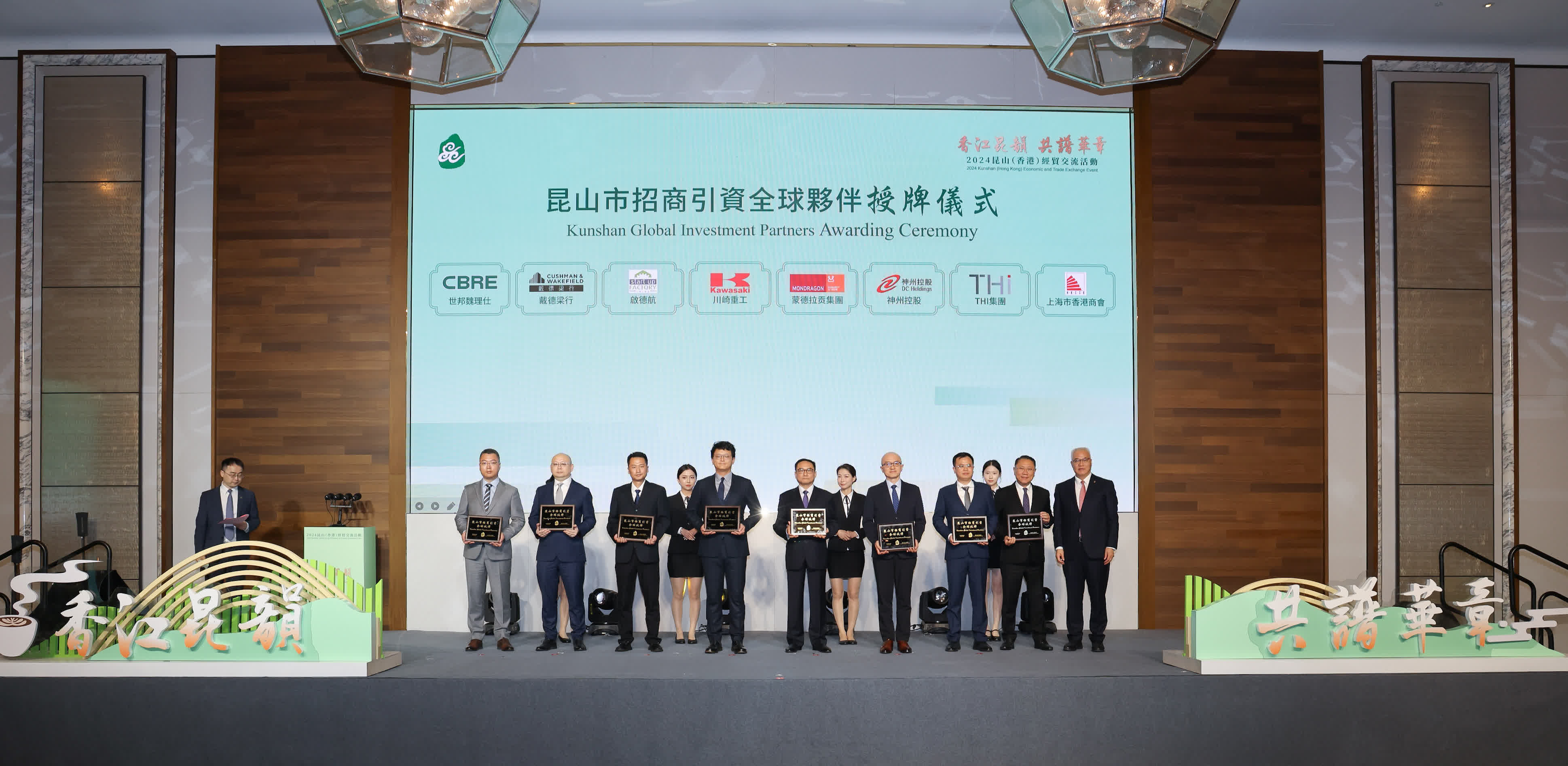 為持續深化昆山對港經貿文化交流,促進兩地融合發展,設立在香港神州控股國際總部的「昆山(香港)國際商務交流中心」正式揭牌,將發揮橋樑紐帶作用,定期聯絡促進並擴大兩地經貿文化交流,推動合作邁向新階段。活動現場,《昆山市促進招商引資全球夥伴計劃》發布,並向世邦魏理仕、戴德梁行、啟德航國際、川崎重工、蒙特拉貢集團、神州控股、THI集團、上海市香港商會等8家昆山市招商引資全球夥伴授牌,昆山招商引資的「朋友圈」得到進一步拓展。