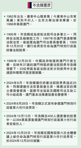 據新華社報道:國務院總理李強昨日主持召開國務院第六次全體會議,決定任命岑浩輝為澳門特別行政區第六任行政長官,於2024年12月20日就職。