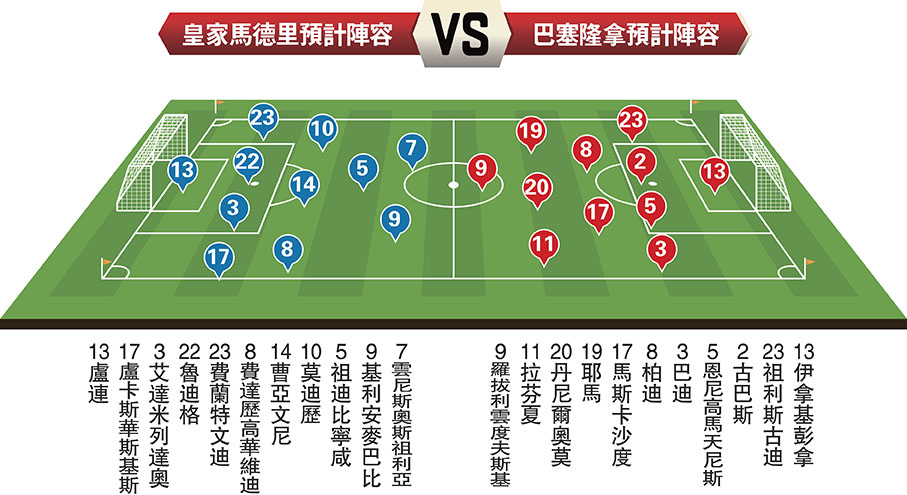 比起進攻火力,皇馬今季的問題更在於防守,球隊近八戰只有一場保持不失,上場對多蒙特亦是先失兩球再反勝。中場缺少了今夏退役的卻奧斯控制節奏,而莫迪歷亦已屆39歲,今季的皇馬在控制比賽能力方面明顯有所下降。此外,再加上防守悍將卡華積及門將高圖爾斯都因傷缺席這場西班牙打吡大戰,皇馬要完全限制巴塞狀態大勇的「三叉戟」並非易事。皇馬較有利的是今仗主場作戰,而兩隊近四次交鋒皇馬亦全數取勝,心理上佔有一定優勢。