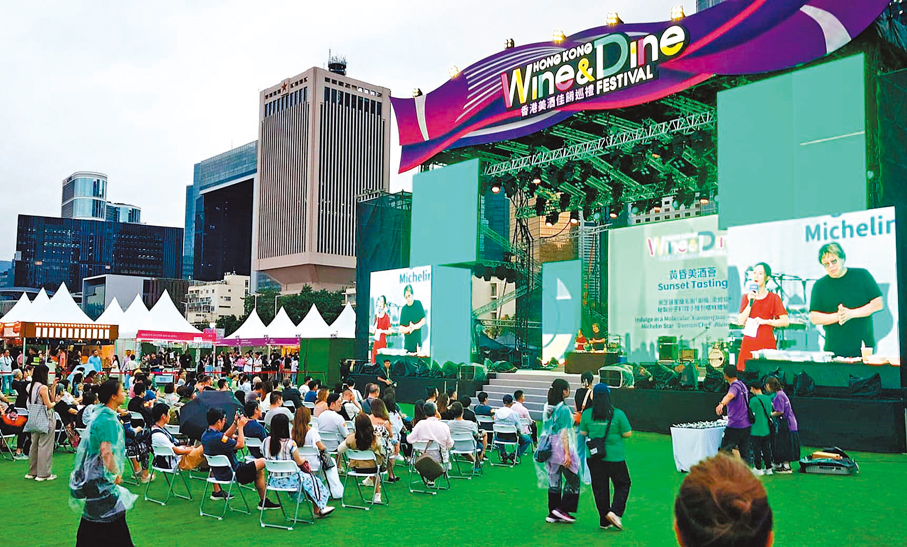 (香港文匯報記者 劉明)香港天文台昨日上午因應強烈熱帶風暴「潭美」增強為颱風,改發三號強風信號,但香港旅遊發展局主辦的年度盛事「香港美酒佳餚巡禮」如期舉行,只有會場內的「維港廊」要暫停開放。有參展商表示受風暴影響,昨日人流減少兩至三成。現場所見,有不少巿民及旅客入場品酒和享受美食,臨近傍晚人流更多。有入場人士表示,今次是慕名首次到場,由於沒有天雨且打風,令天氣清涼,認為感受更佳。