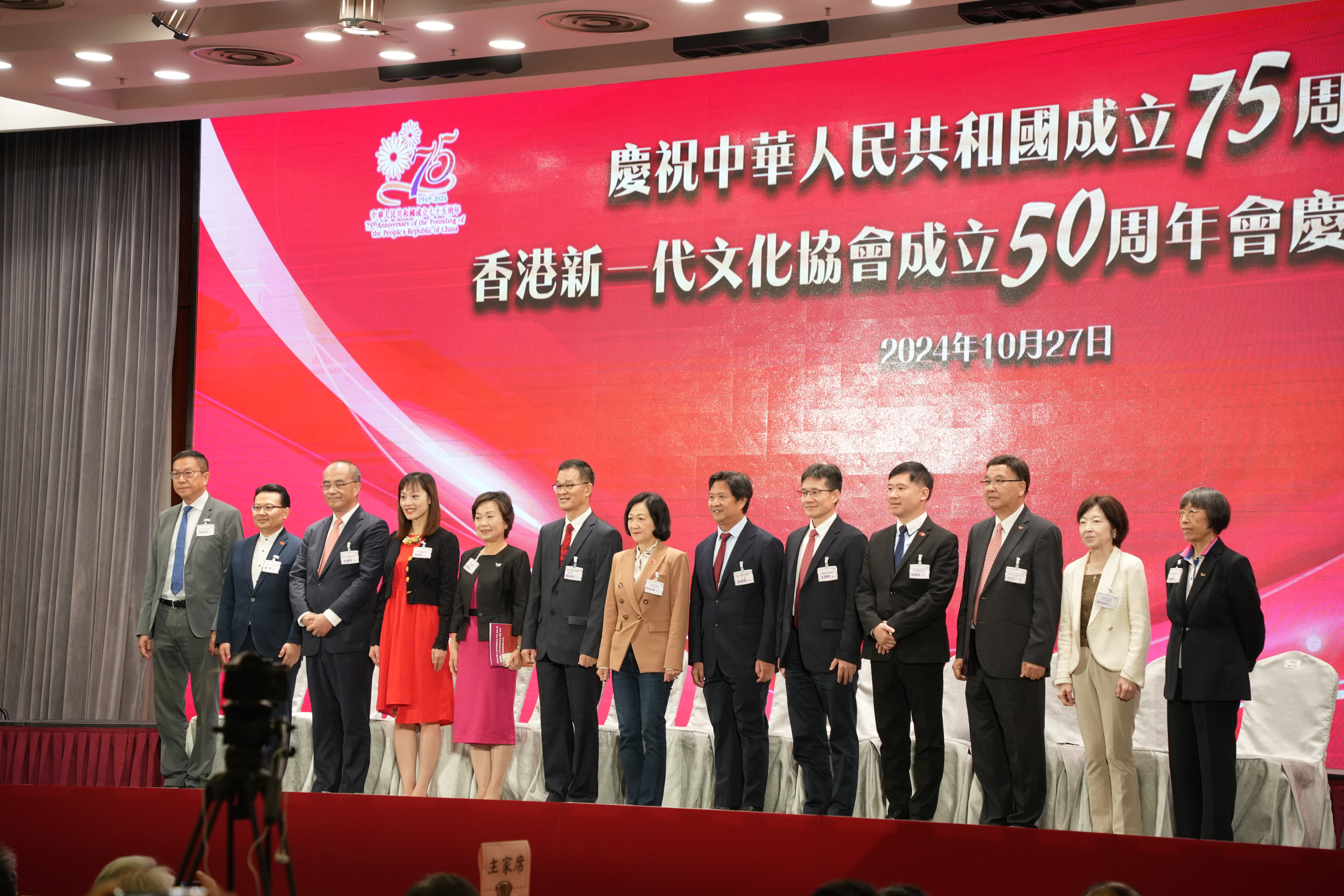 (大公文匯全媒體 記者 李九歌)慶祝中華人民共和國成立75周年暨香港新一代文化協會成立50周年會慶典禮今日(27日)舉行,行政會議召集人葉劉淑儀、教育局局長蔡若蓮、中央政府駐港聯絡辦公室教育科技部部長王偉明、香港新一代文化協會總幹事蘇祉祺等擔任主禮嘉賓。